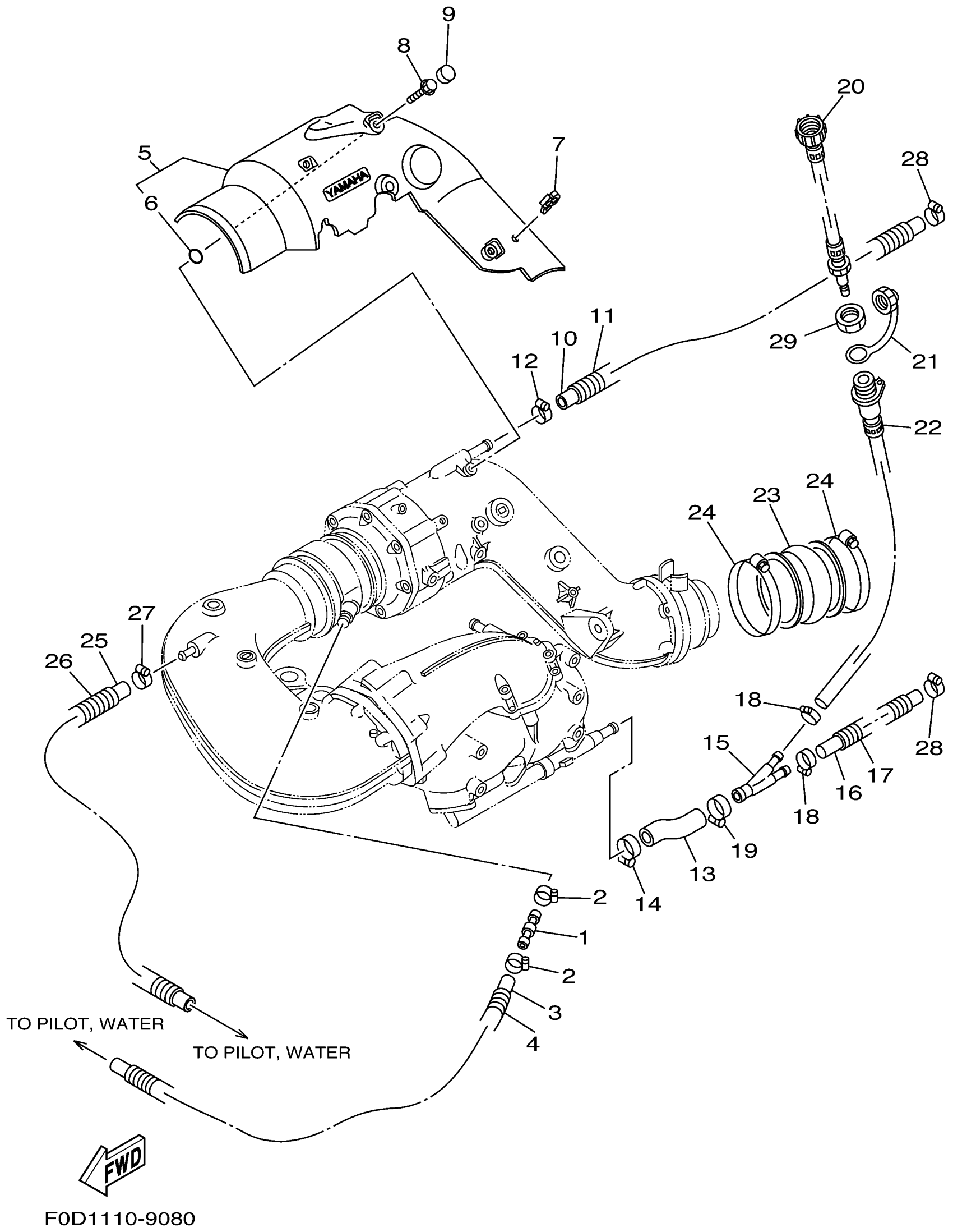 Yamaha XA1200X (WAVE RUNNER XL1200 LTD) F0D1 1999 EXHAUST 2 Diagram