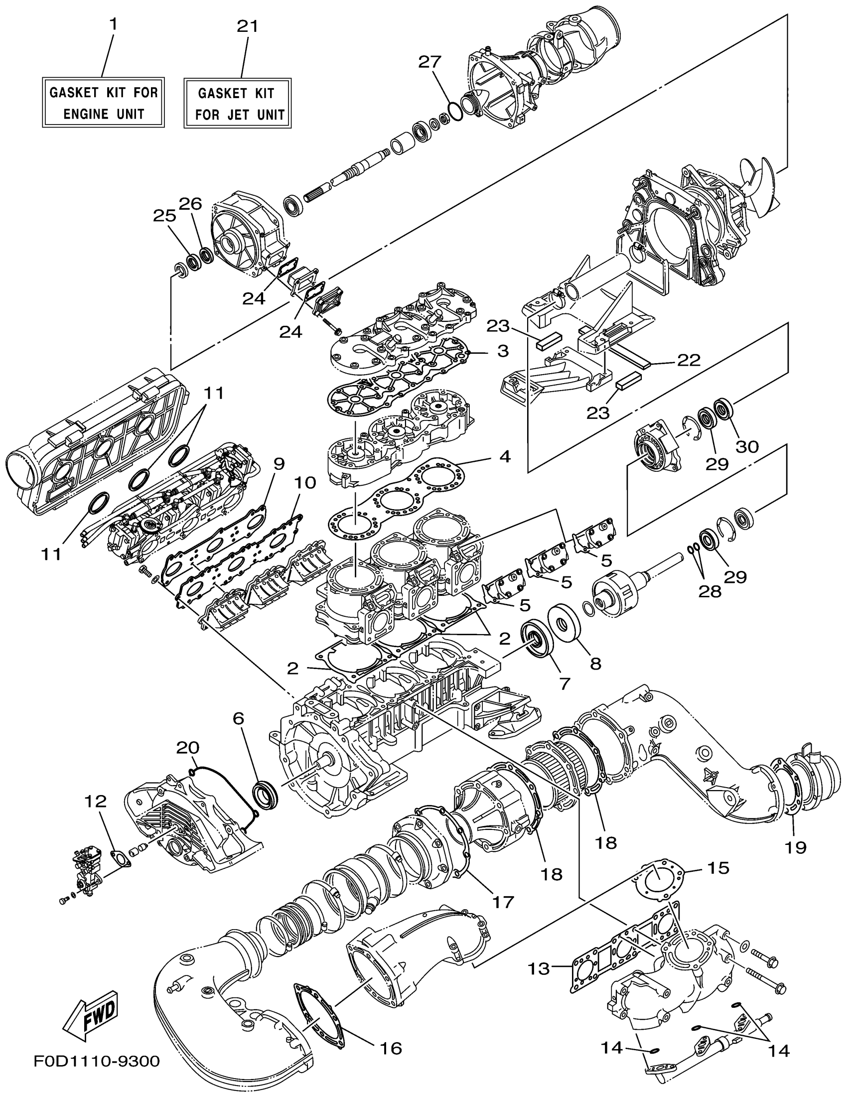 Yamaha XA1200X (WAVE RUNNER XL1200 LTD) F0D1 1999 REPAIR KIT 1 Diagram