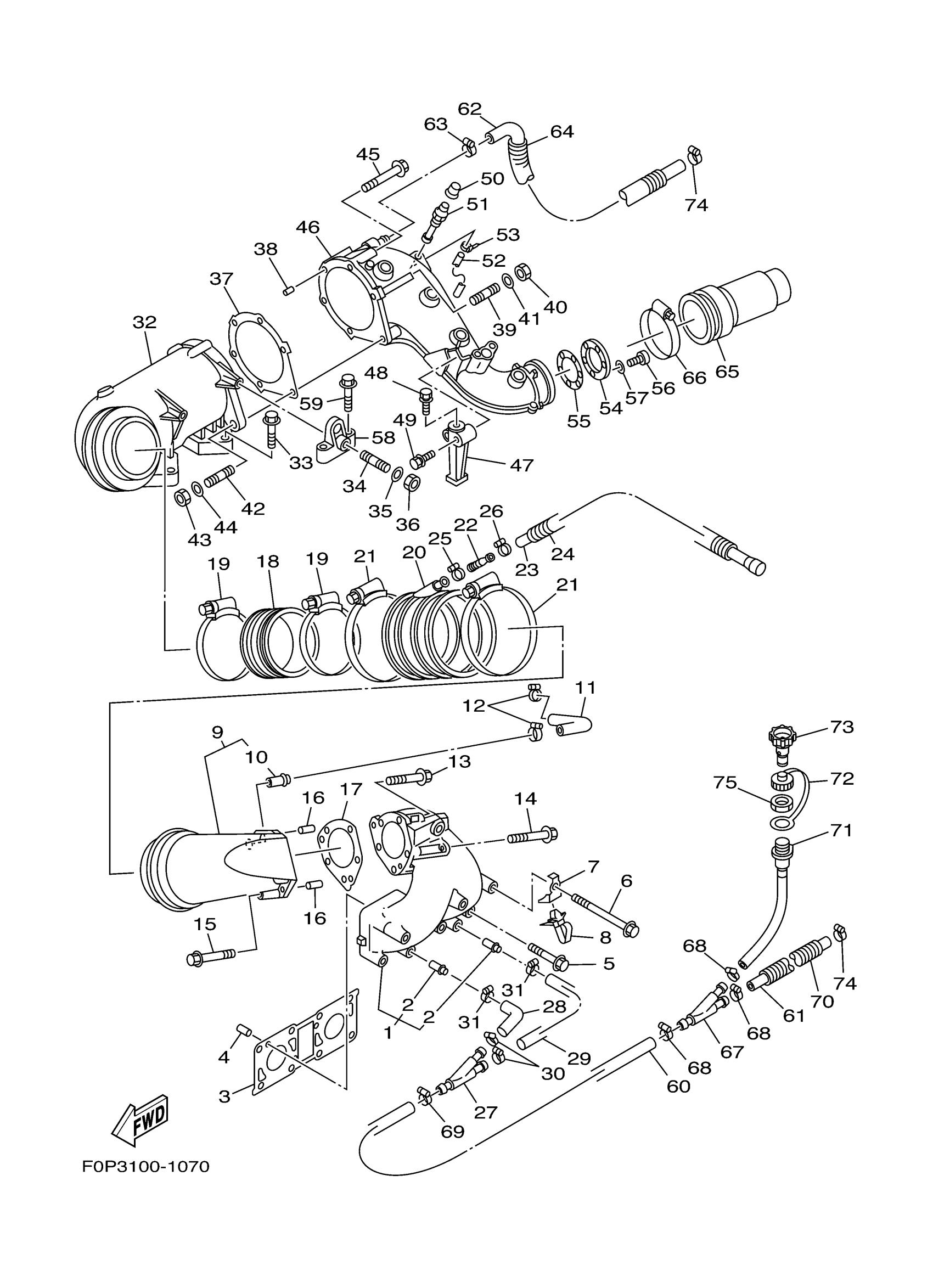 Yamaha XA800AC (XLT800) F1F7 2004 EXHAUST 1 Diagram