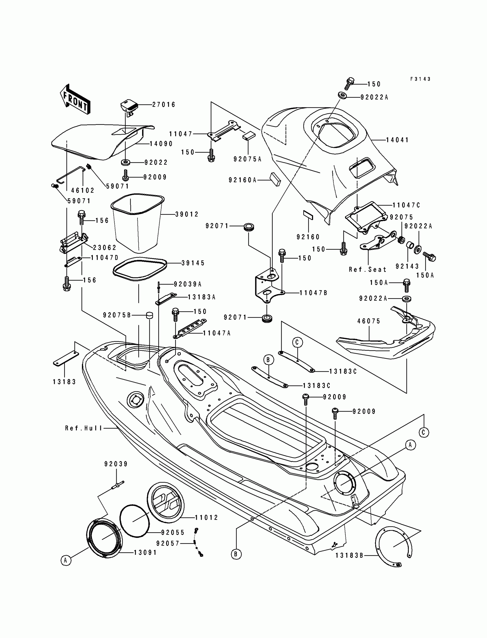 Kawasaki XiR Hull Fittings Diagram