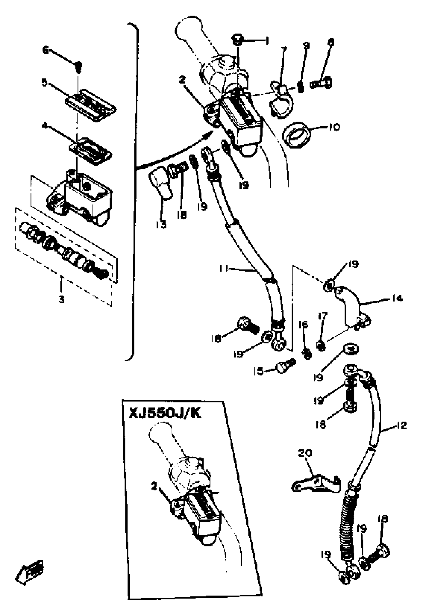 Yamaha XJ550H (XJ550H) 1981 FRONT MASTER CYLINDER XJ550H J K Diagram