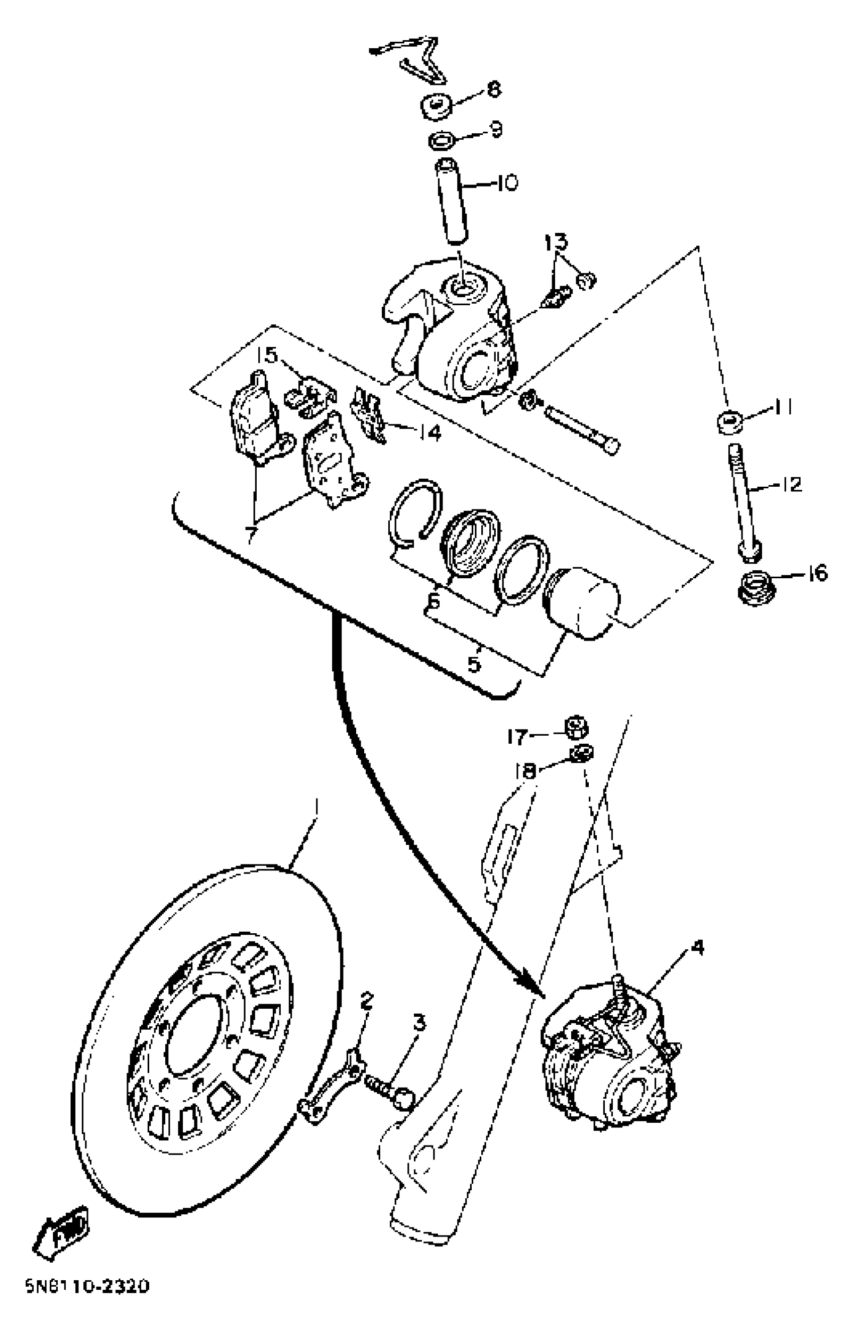 Yamaha XJ650K (XJ650) 1983 FRONT BRAKE CALIPER Diagram