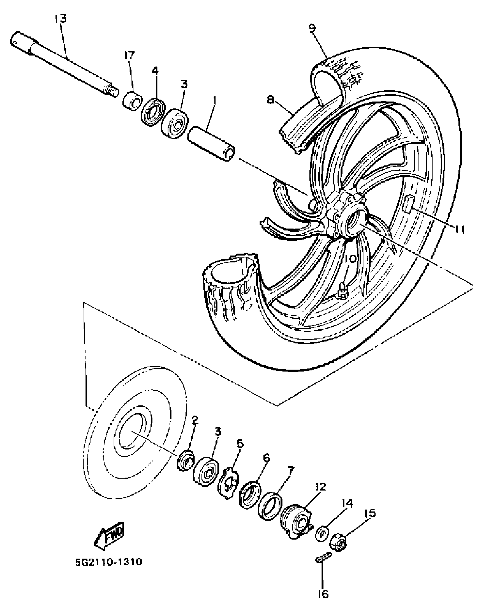 Yamaha XJ750K (XJ750) 1983 FRONT WHEEL Diagram
