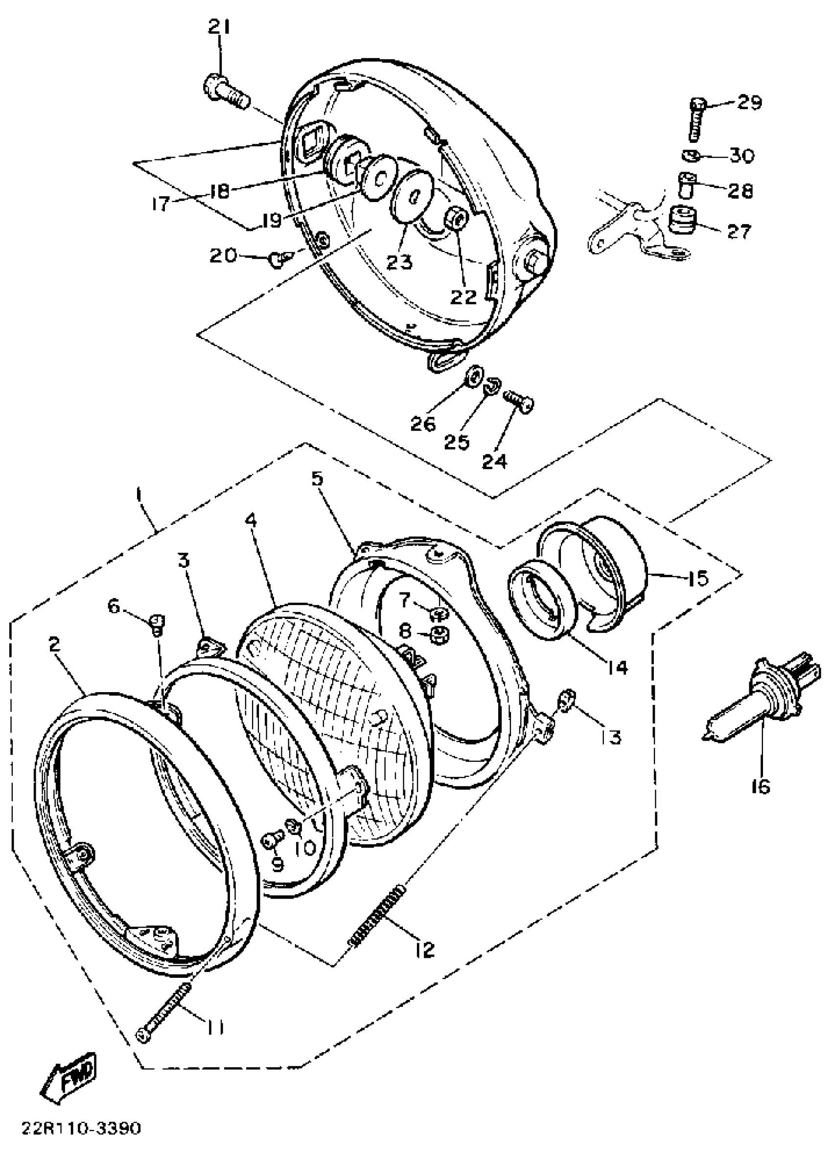 Yamaha XJ750K (XJ750) 1983 HEADLIGHT Diagram