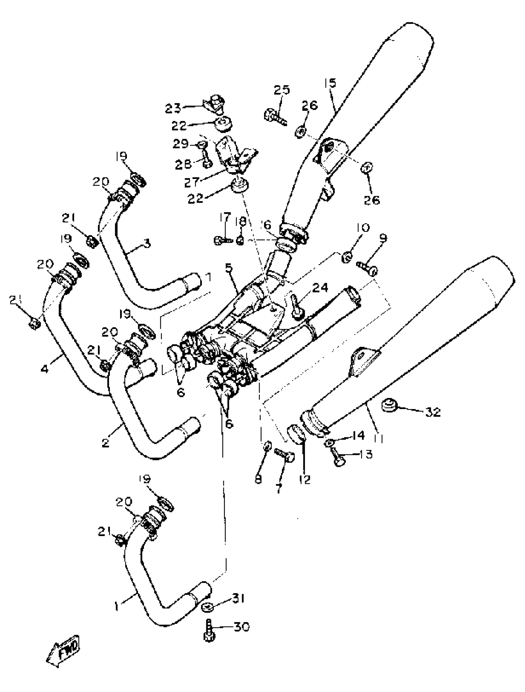 Yamaha XJ750RH (XJ750R) 1981 EXHAUST Diagram