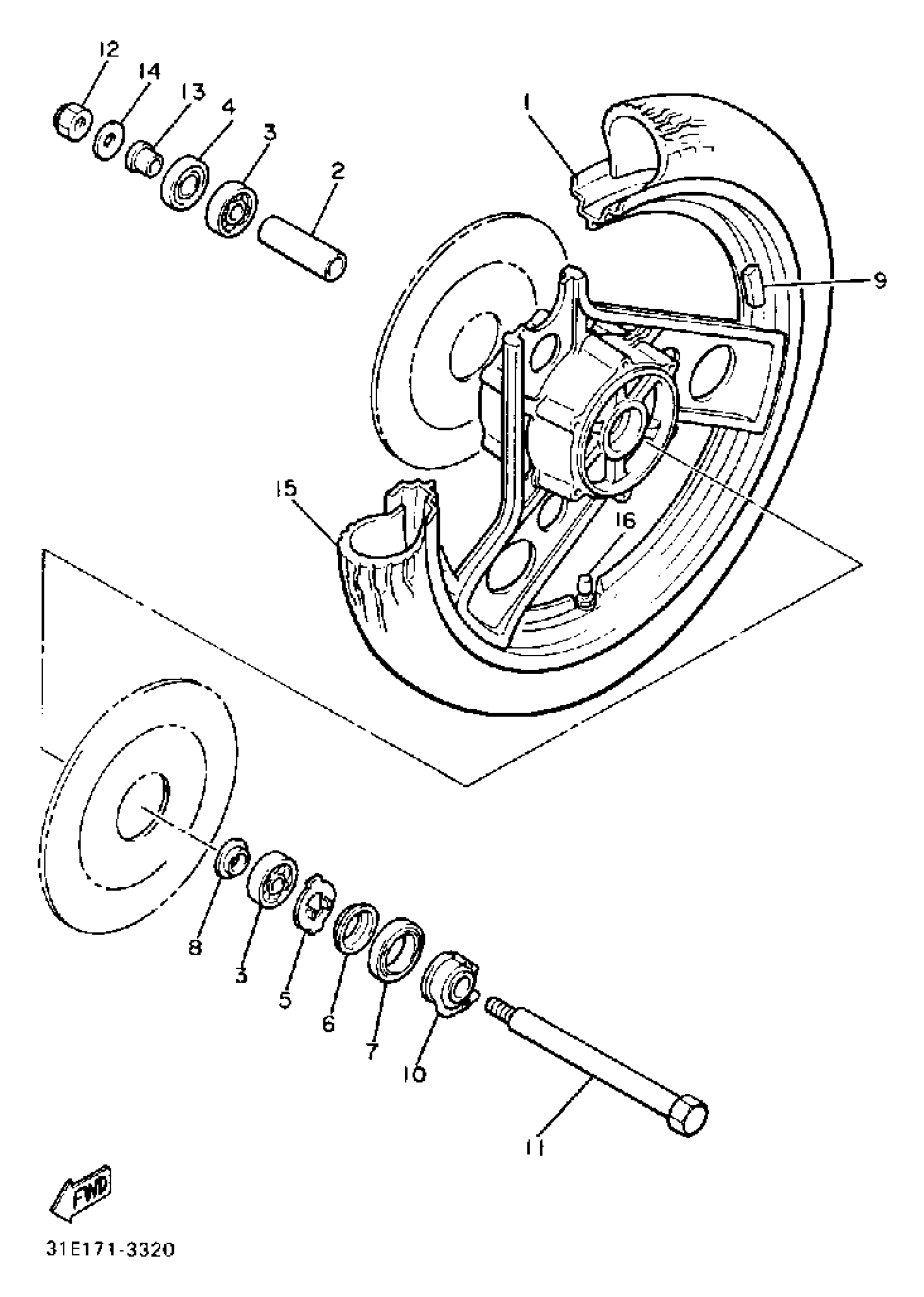 Yamaha XJ900RK (SECA) 35H 1983 FRONT WHEEL Diagram