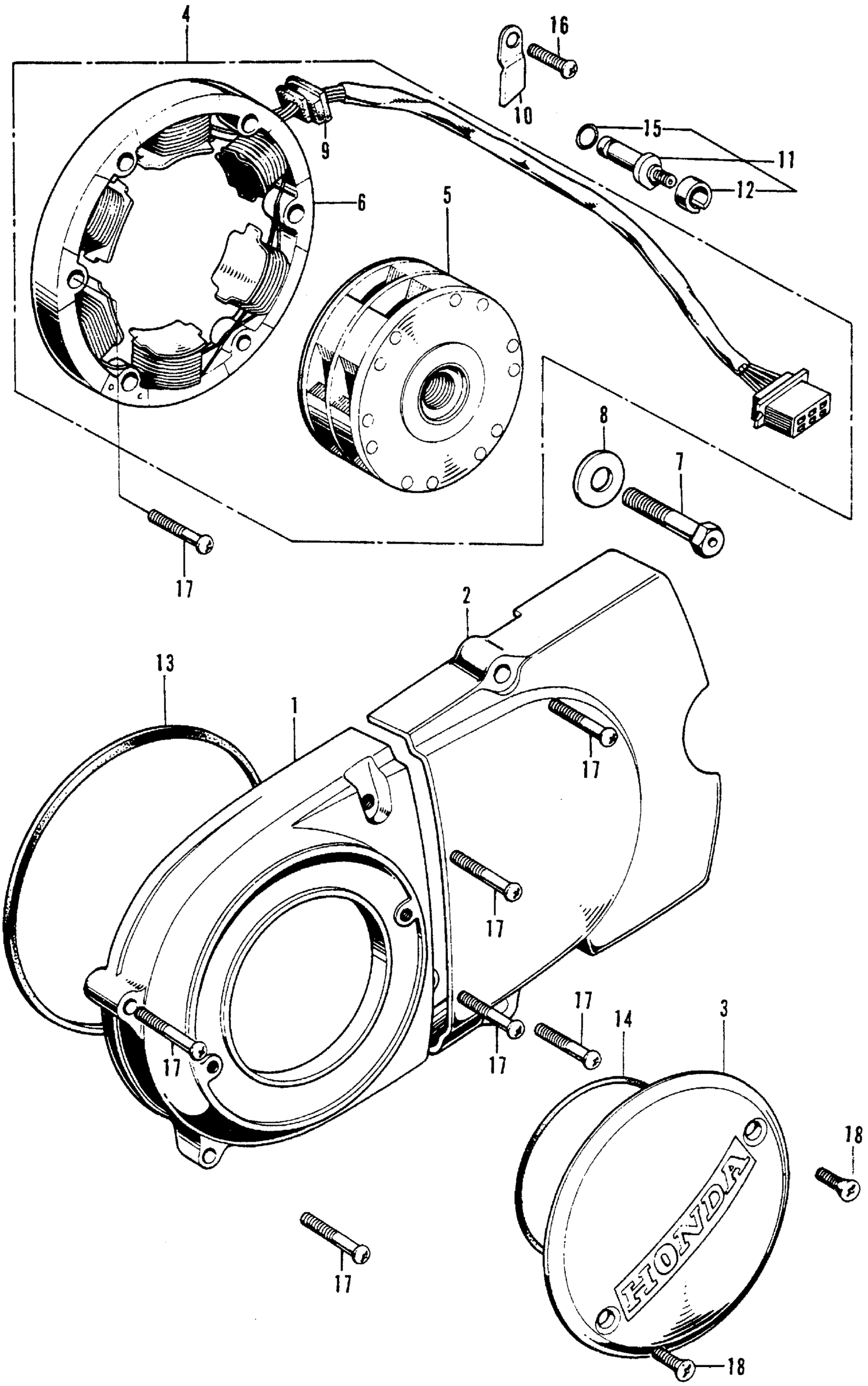 Honda XL100A MOTORCYCLE, JPN, VIN# XL100-1000001 LEFT CRANKCASE COVER + ALTERNATOR Diagram