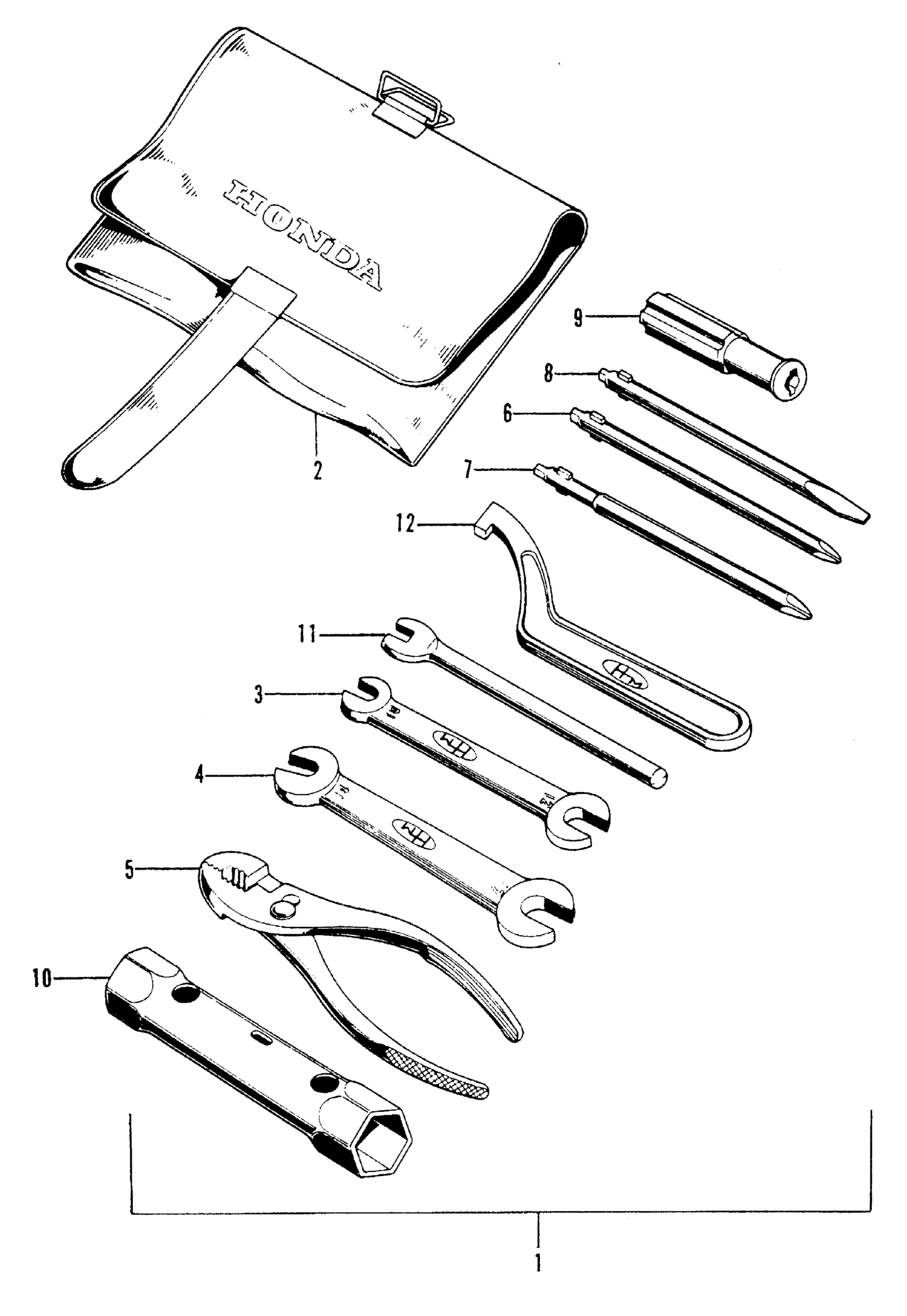 Honda XL100A MOTORCYCLE, JPN, VIN# XL100-1000001 TOOL SET Diagram