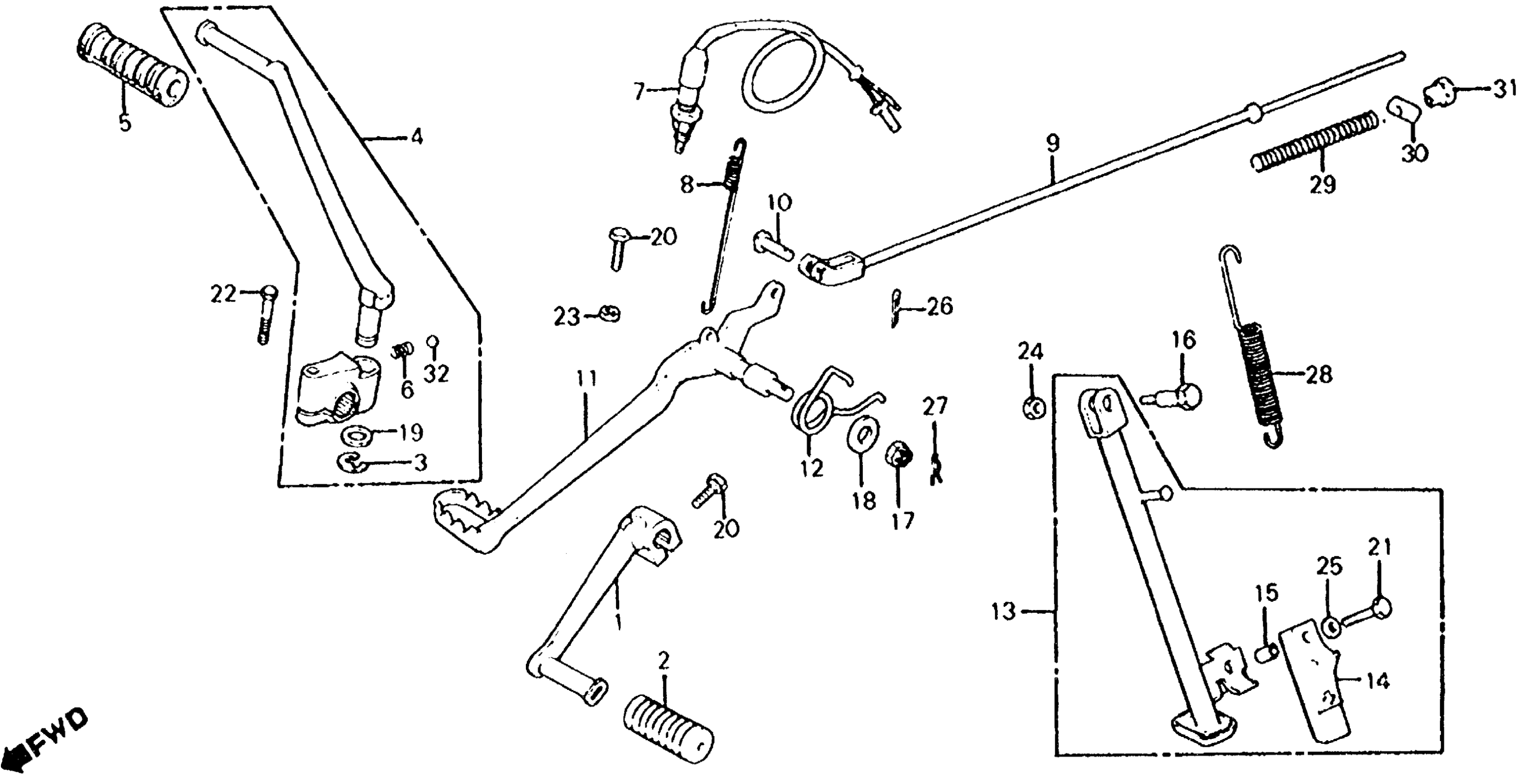 Honda XL100SA (79) MOTORCYCLE, JPN, VIN# HD01-5002640 TO HD01-5012036 BRAKE + GEARSHIFT PEDAL + KICK STARTER ARM 79-80 Diagram