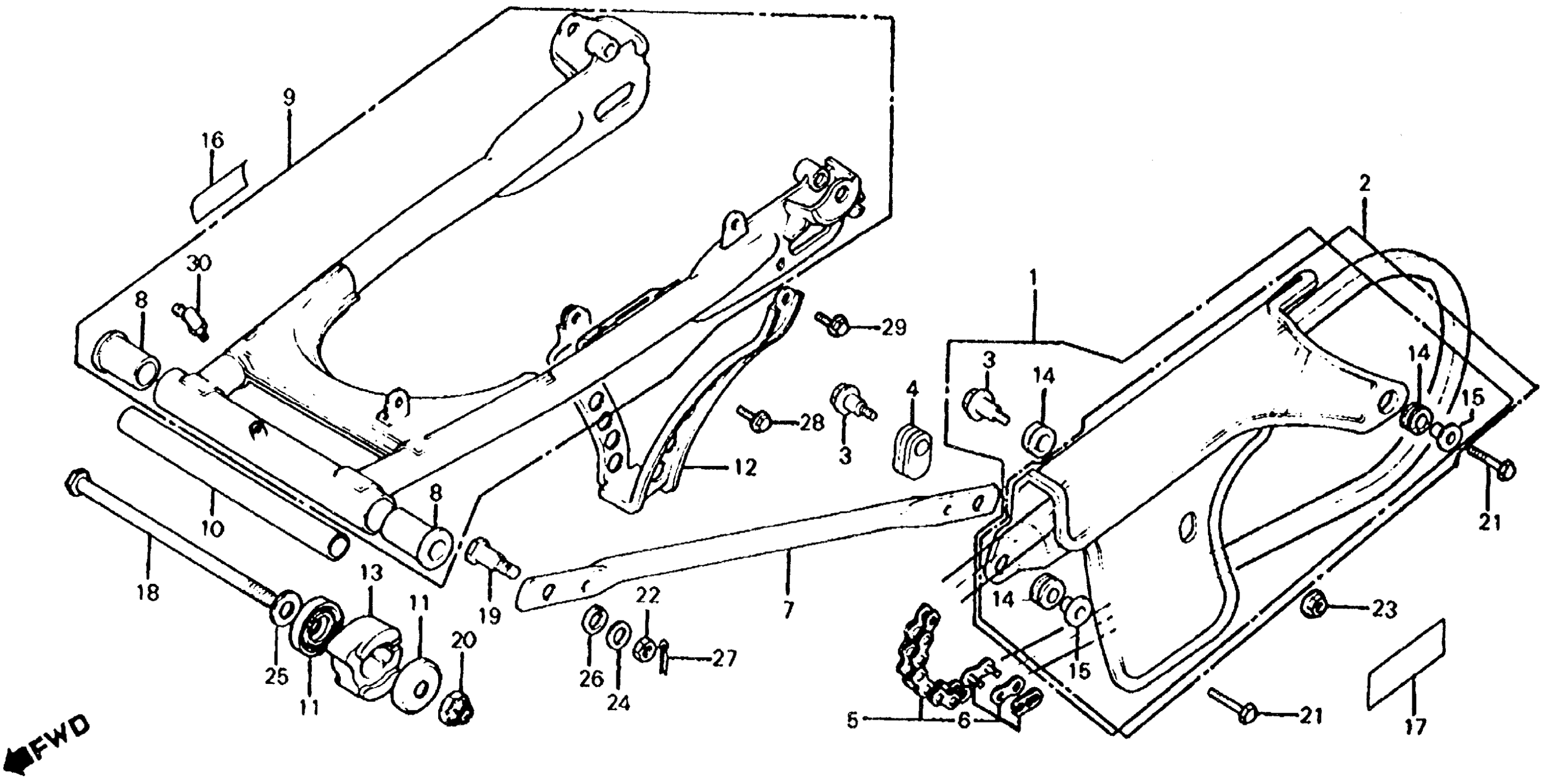 Honda XL100SA (79) MOTORCYCLE, JPN, VIN# HD01-5002640 TO HD01-5012036 XL100S SWINGARM + CHAIN GUARD 79-80 Diagram
