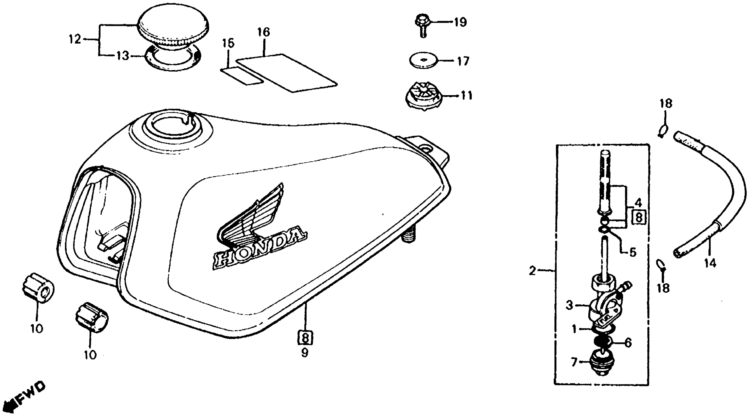 Honda XL100SA (85) MOTORCYCLE, JPN, VIN# JH2HD050-FK400001 FUEL TANK 82-85 Diagram