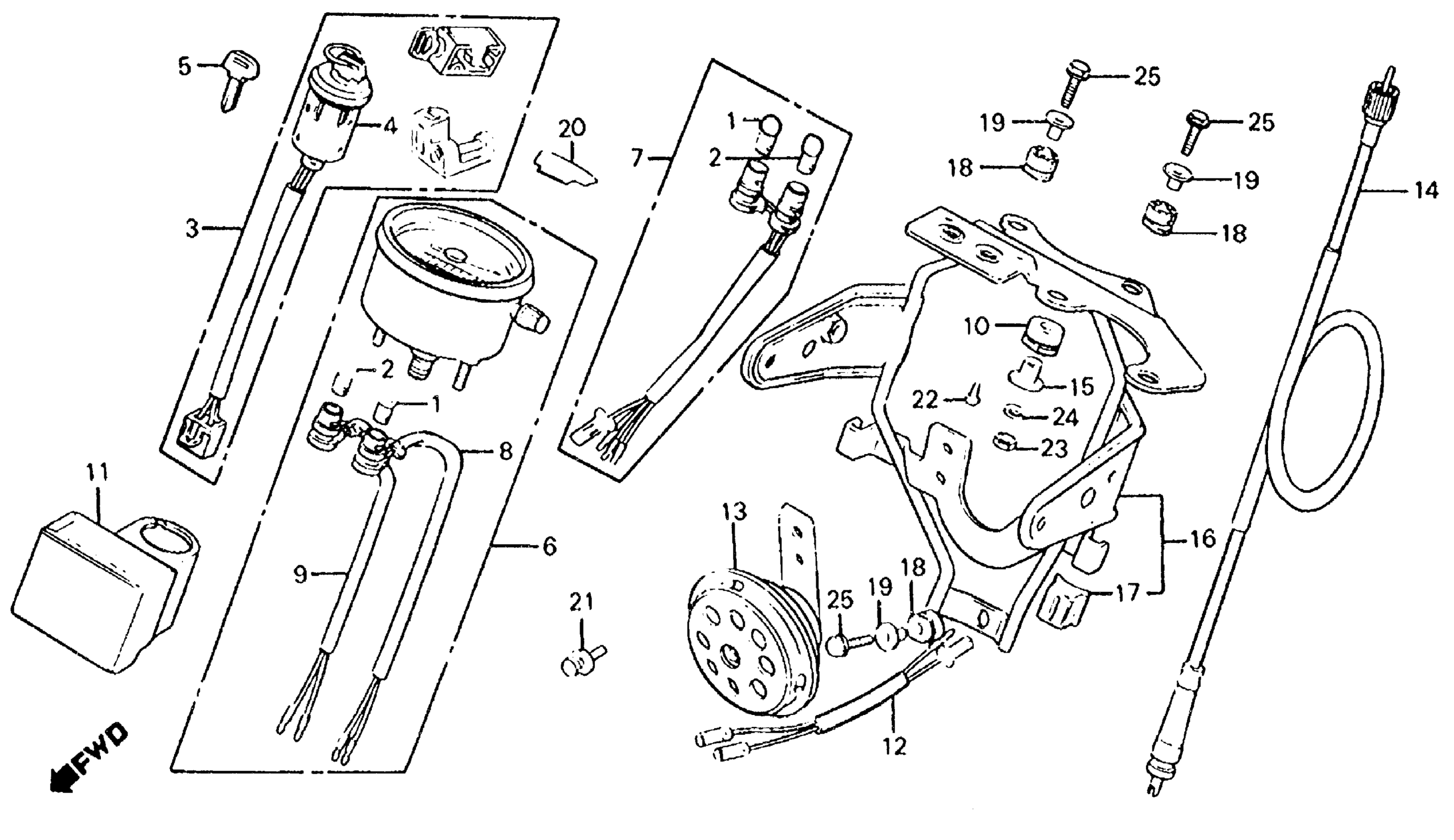 Honda XL100SA (85) MOTORCYCLE, JPN, VIN# JH2HD050-FK400001 SPEEDOMETER + HORN 83-85 Diagram