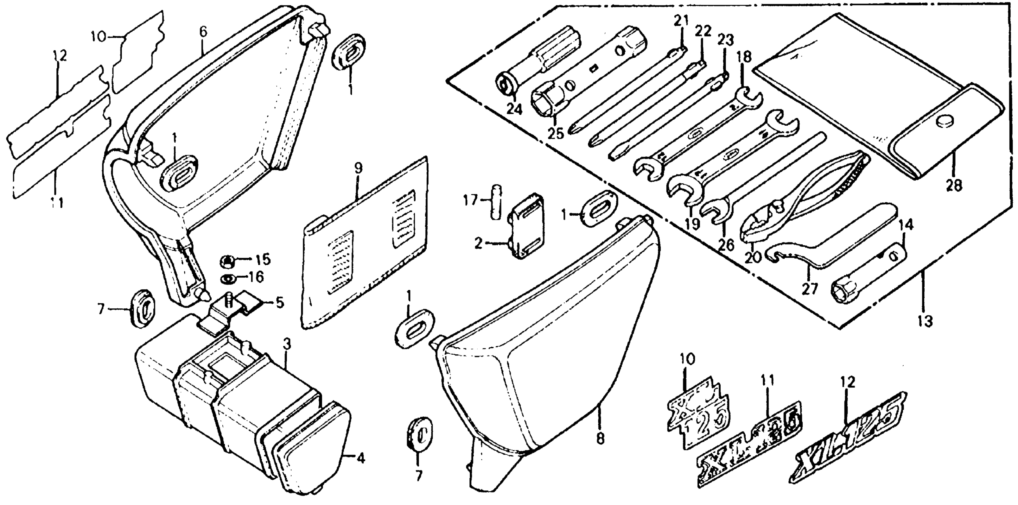 Honda XL125K1A MOTORCYCLE, JPN, VIN# XL125-1100001 SIDE COVER + TOOL Diagram