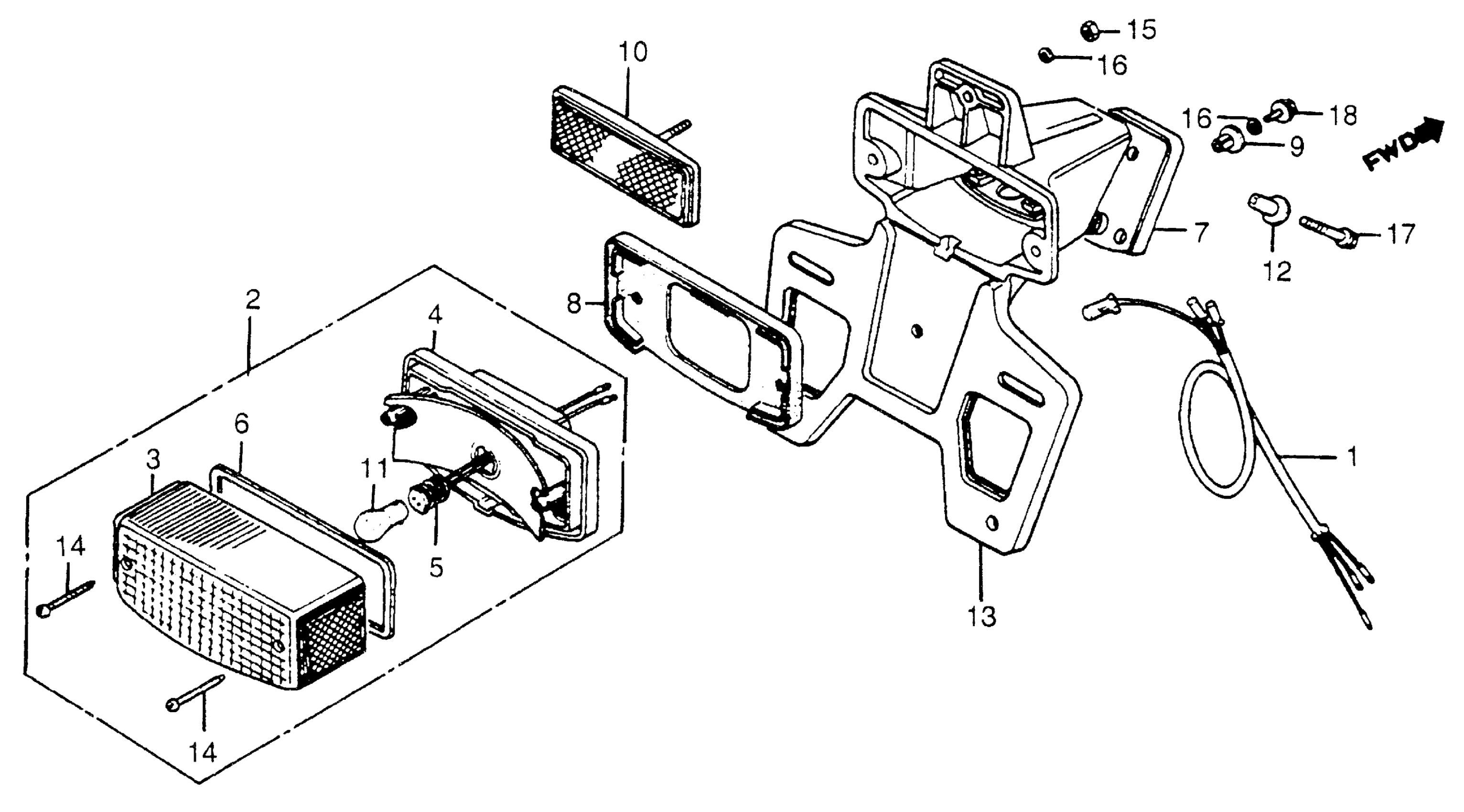 Honda XL125SA (85) MOTORCYCLE, BRA, VIN# 9C2JD020-FR100001 TAILLIGHT Diagram