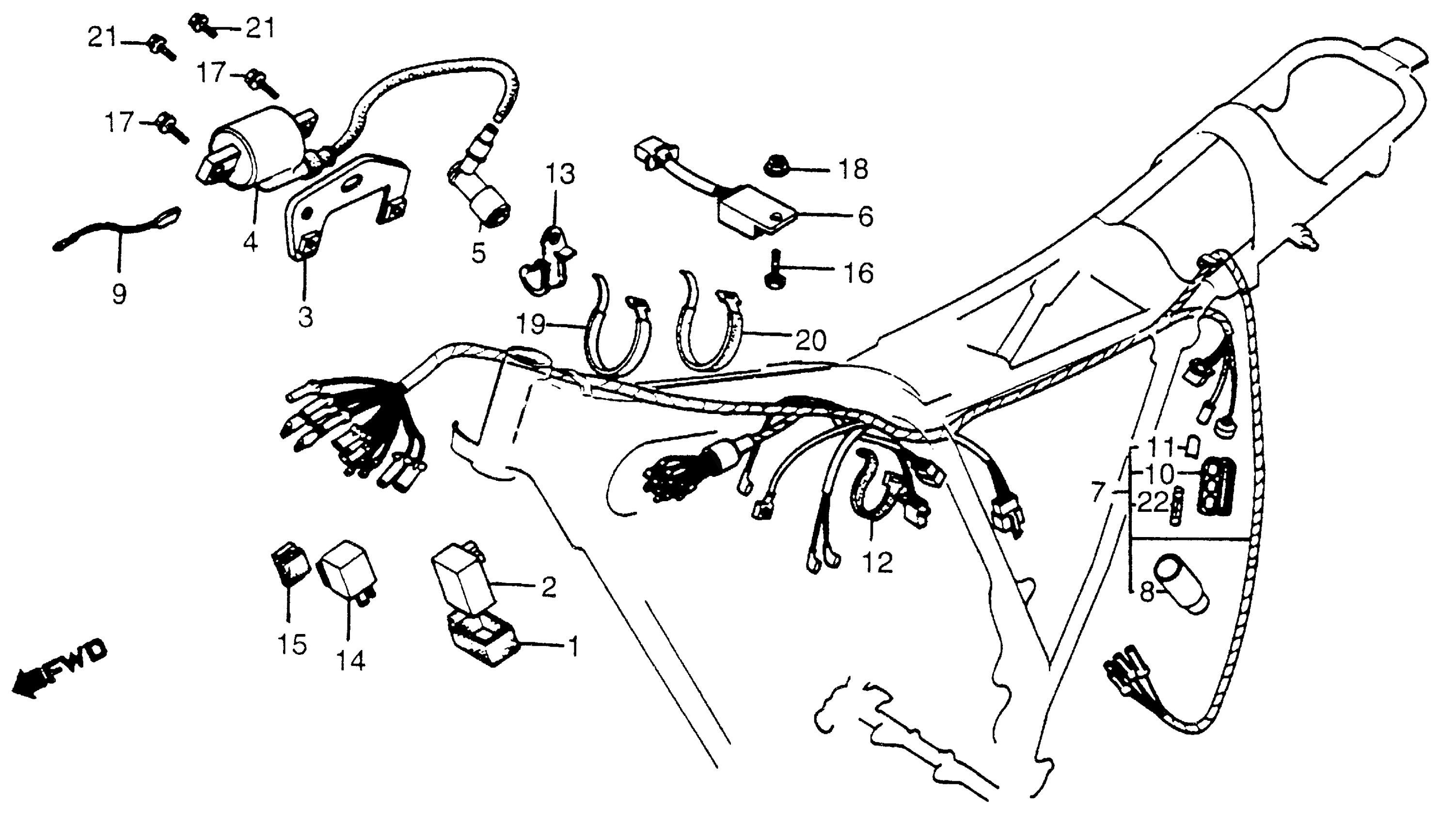 Honda XL125SA (85) MOTORCYCLE, BRA, VIN# 9C2JD020-FR100001 WIRE HARNESS + IGNITION COIL Diagram