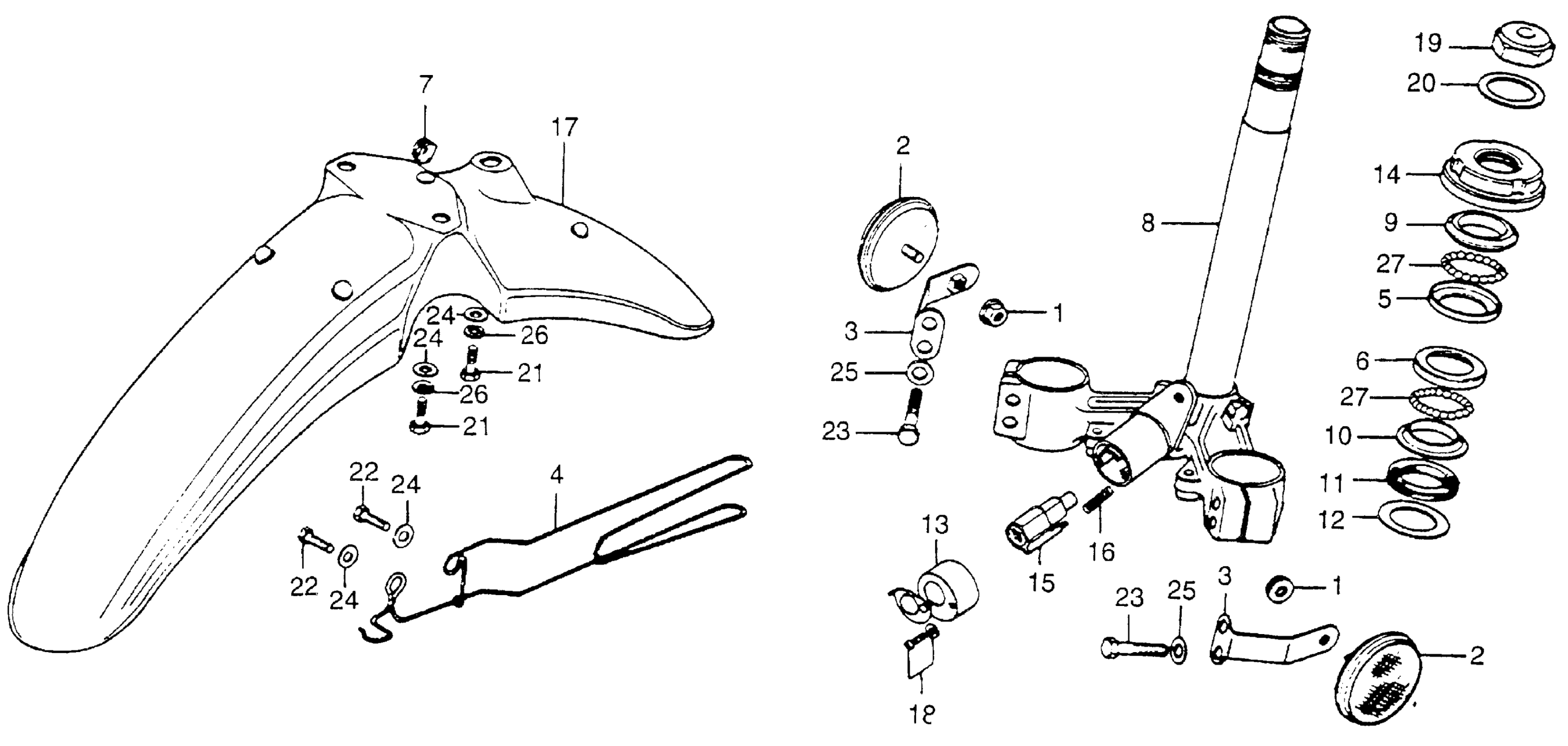 Honda XL175A (78) MOTORCYCLE, JPN, VIN# XL175-4200004 TO XL175-4206370 FRONT FENDER + STEERING STEM Diagram