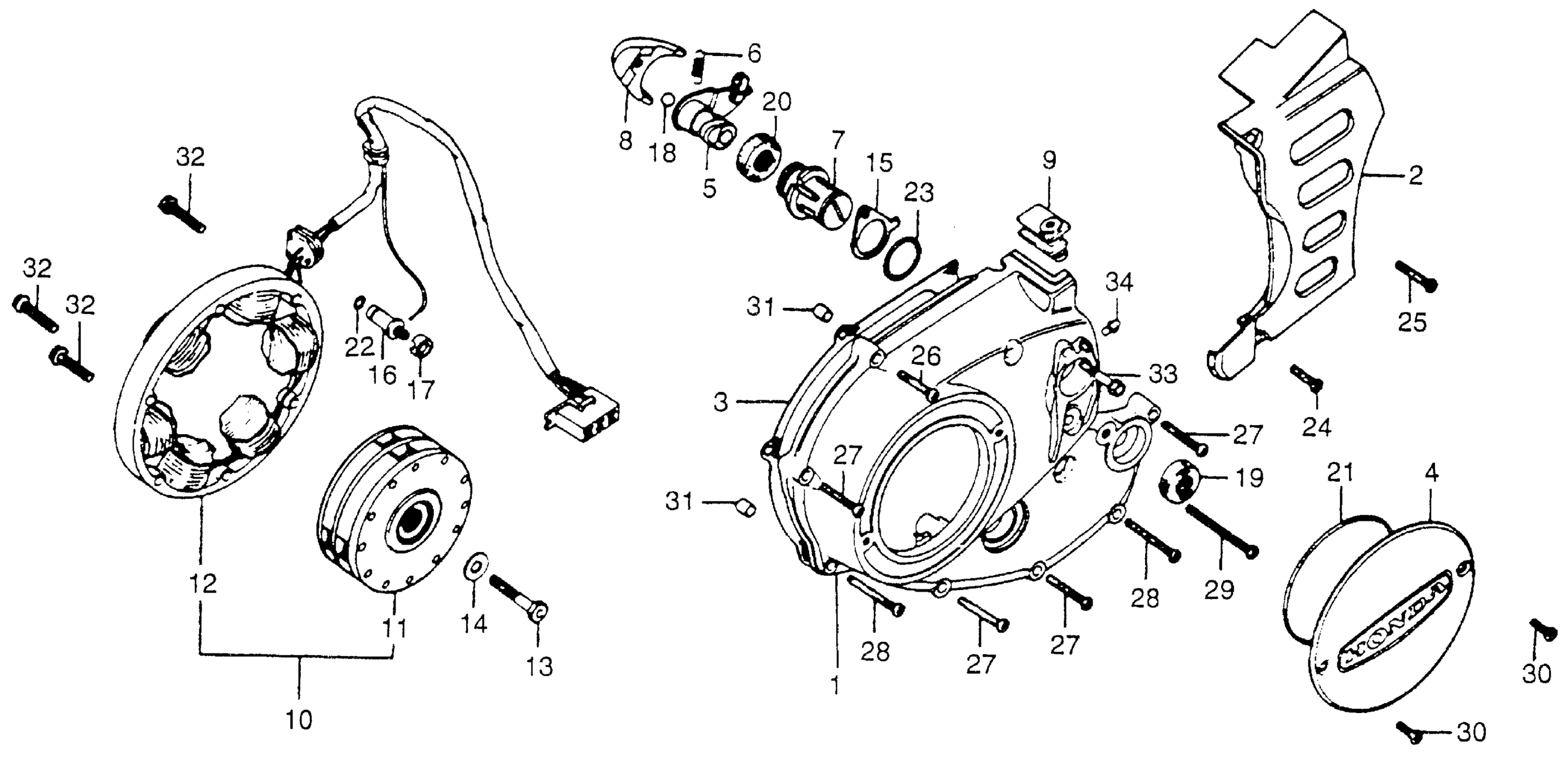 Honda XL175A (78) MOTORCYCLE, JPN, VIN# XL175-4200004 TO XL175-4206370 LEFT CRANKCASE COVER + ALTERNATOR Diagram