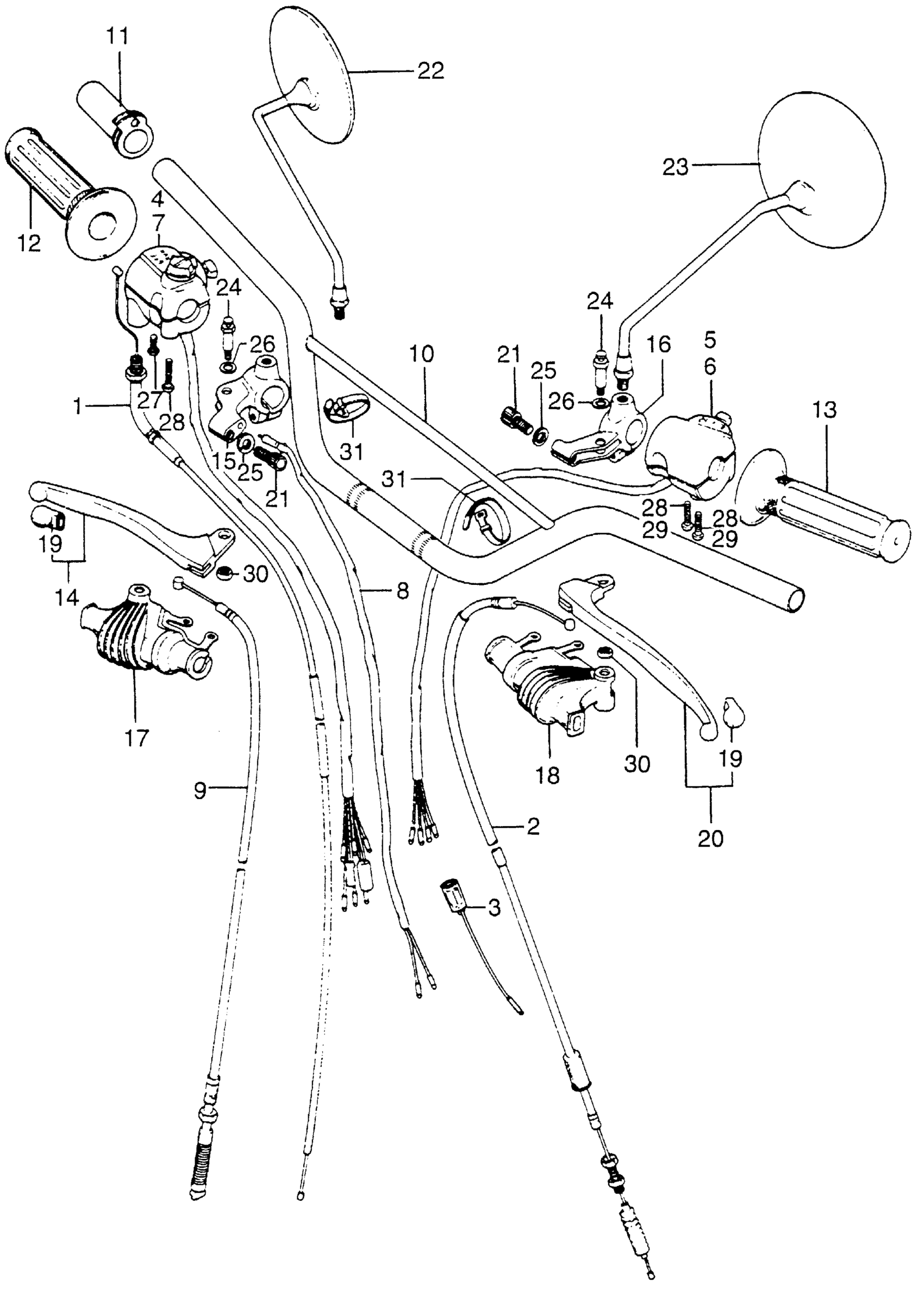 HANDLEBAR + CABLES + MIRRORS