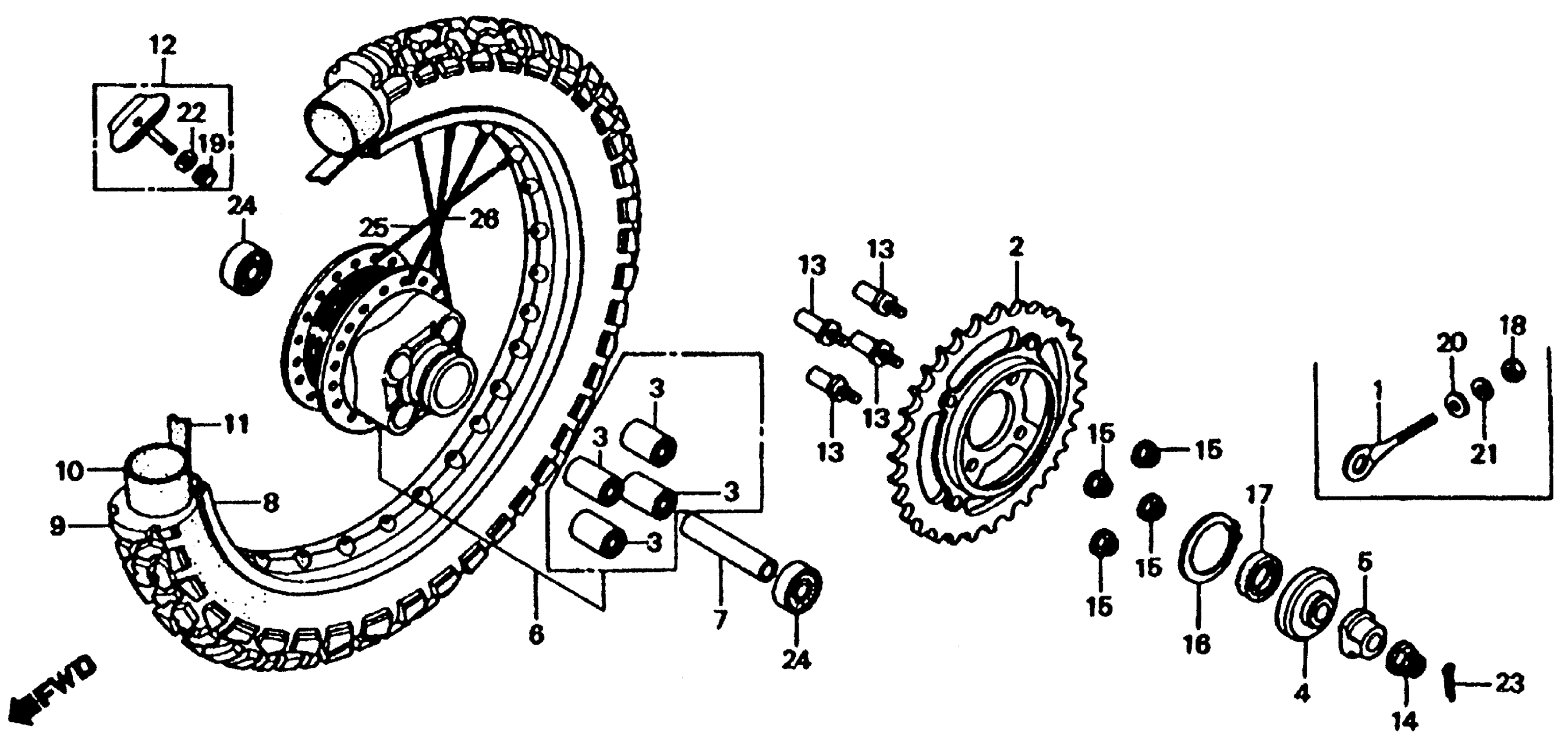 Honda XL185SA (83) MOTORCYCLE, JPN, VIN# JH2MD020-DK400003 REAR WHEEL Diagram