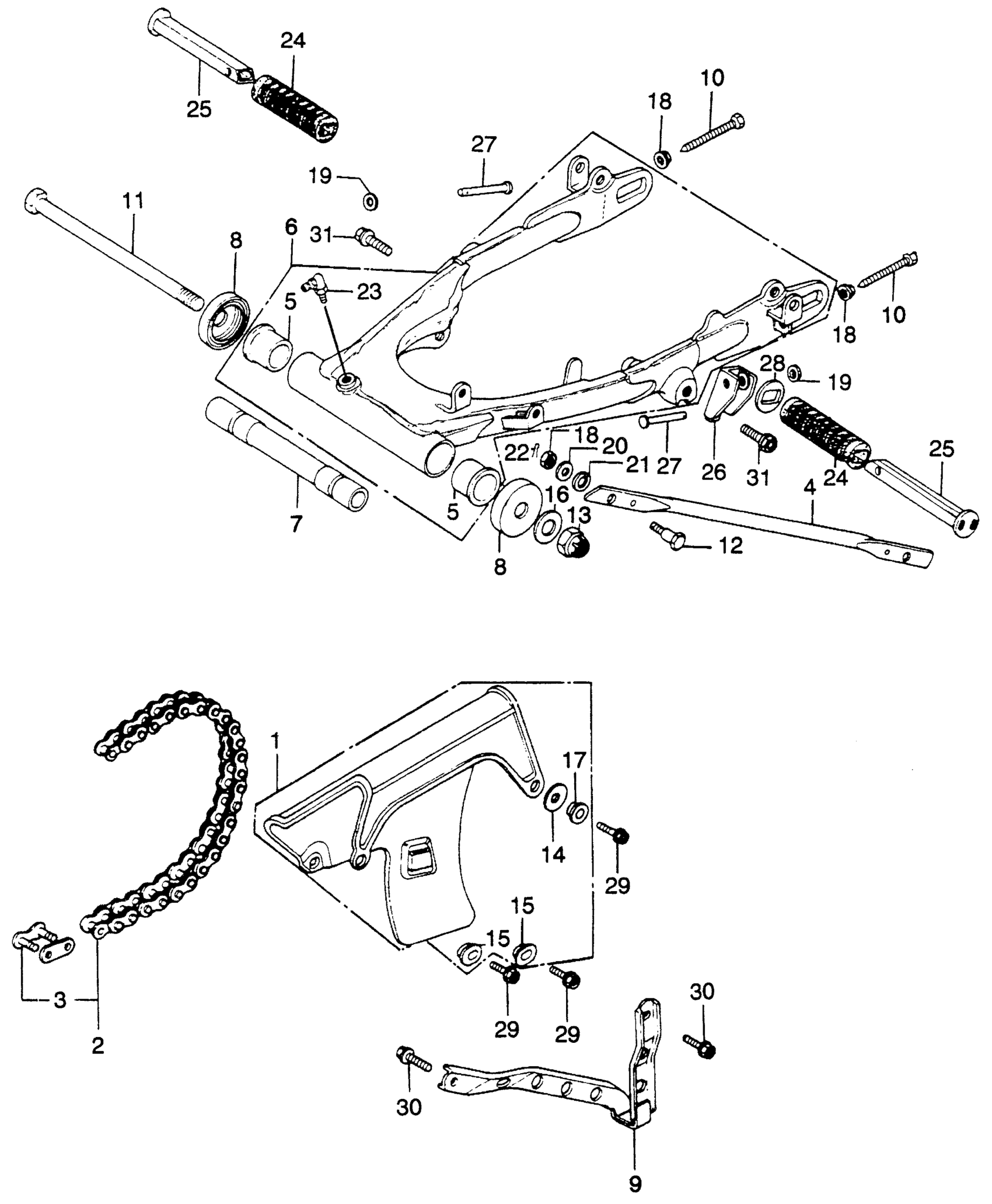 SWINGARM + DRIVE CHAIN K1-K2
