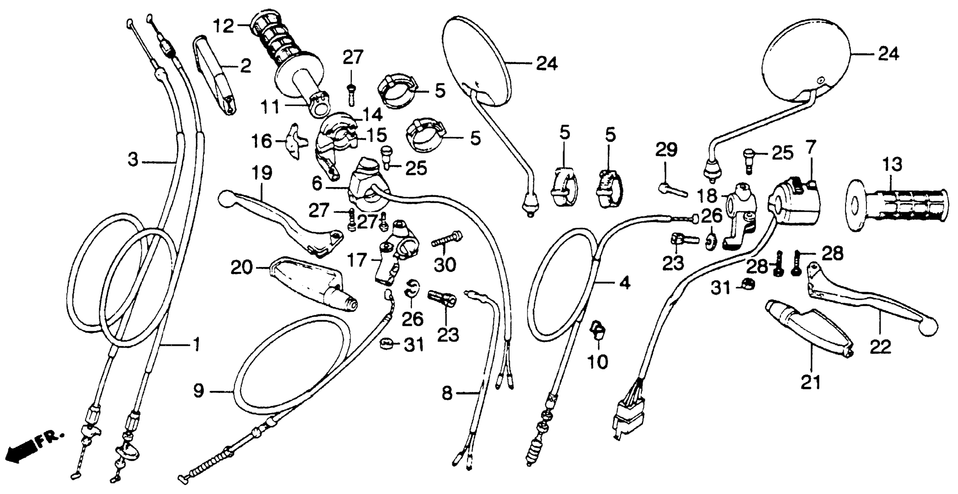 Honda XL250RA (83) MOTORCYCLE, JPN, VIN# JH2MD030-DM100001 TO JH2MD030-DM104157 CONTROL LEVERS + SWITCHES + CABLES 82-83 Diagram
