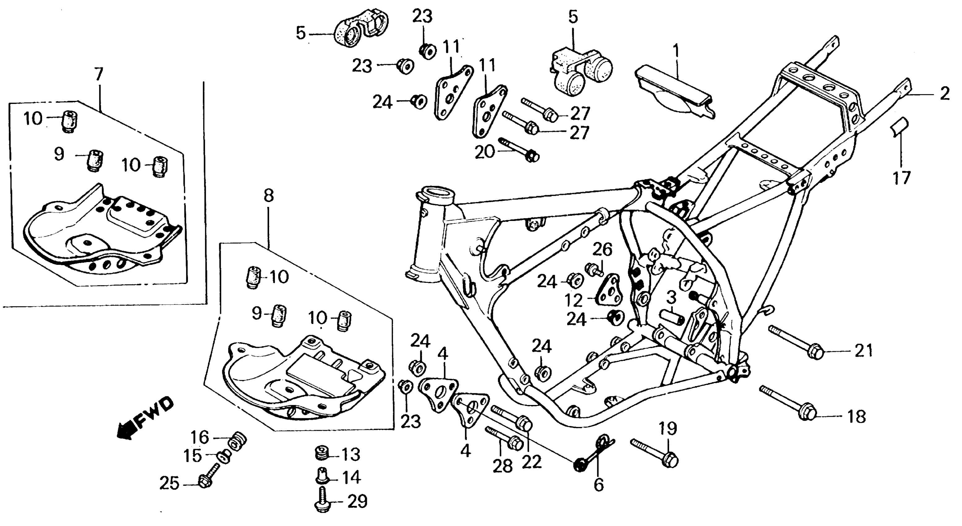 Honda XL250RA (87) MOTORCYCLE, JPN, VIN# JH2MD110-HK300001 FRAME Diagram