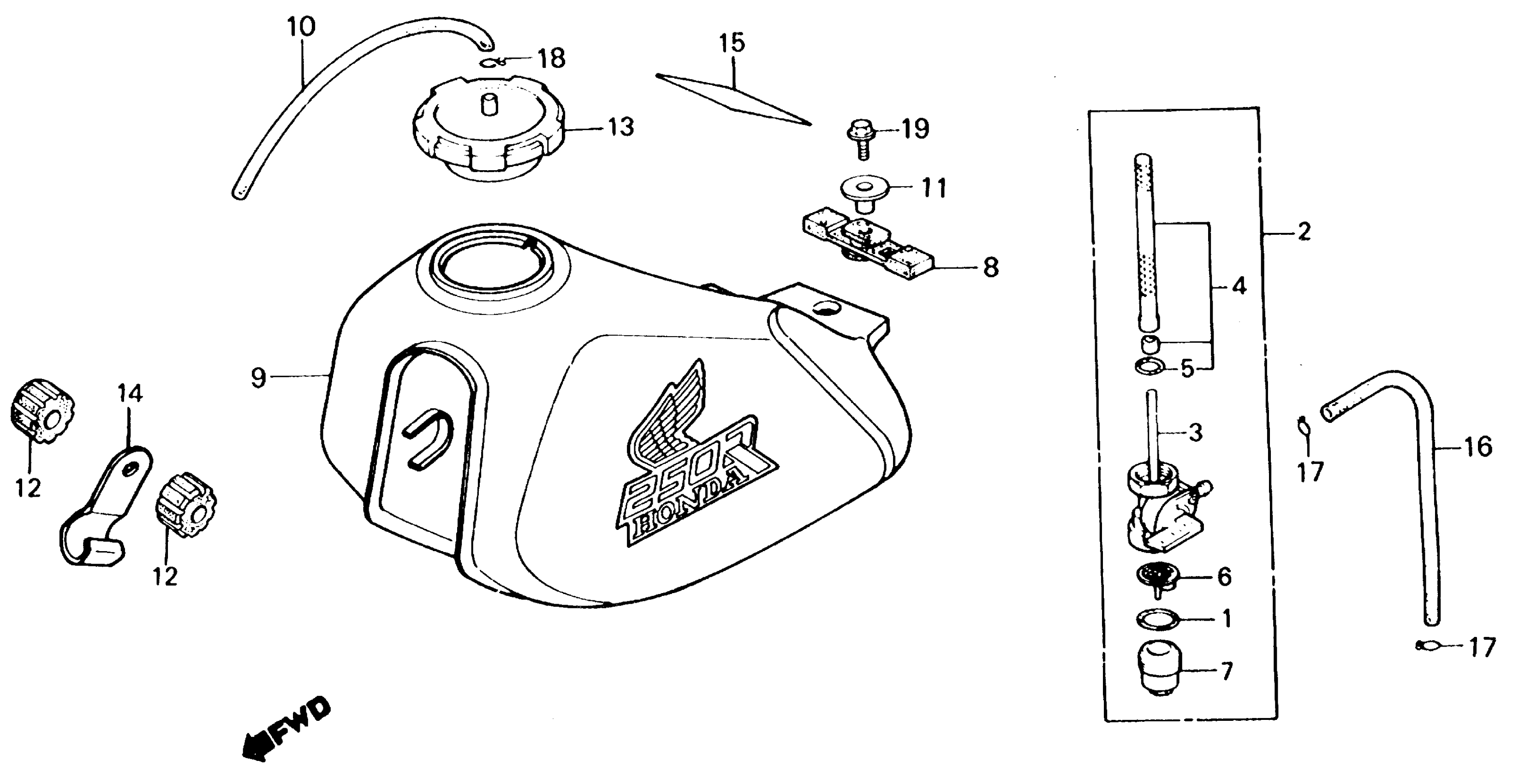 Honda XL250RA (87) MOTORCYCLE, JPN, VIN# JH2MD110-HK300001 FUEL TANK Diagram