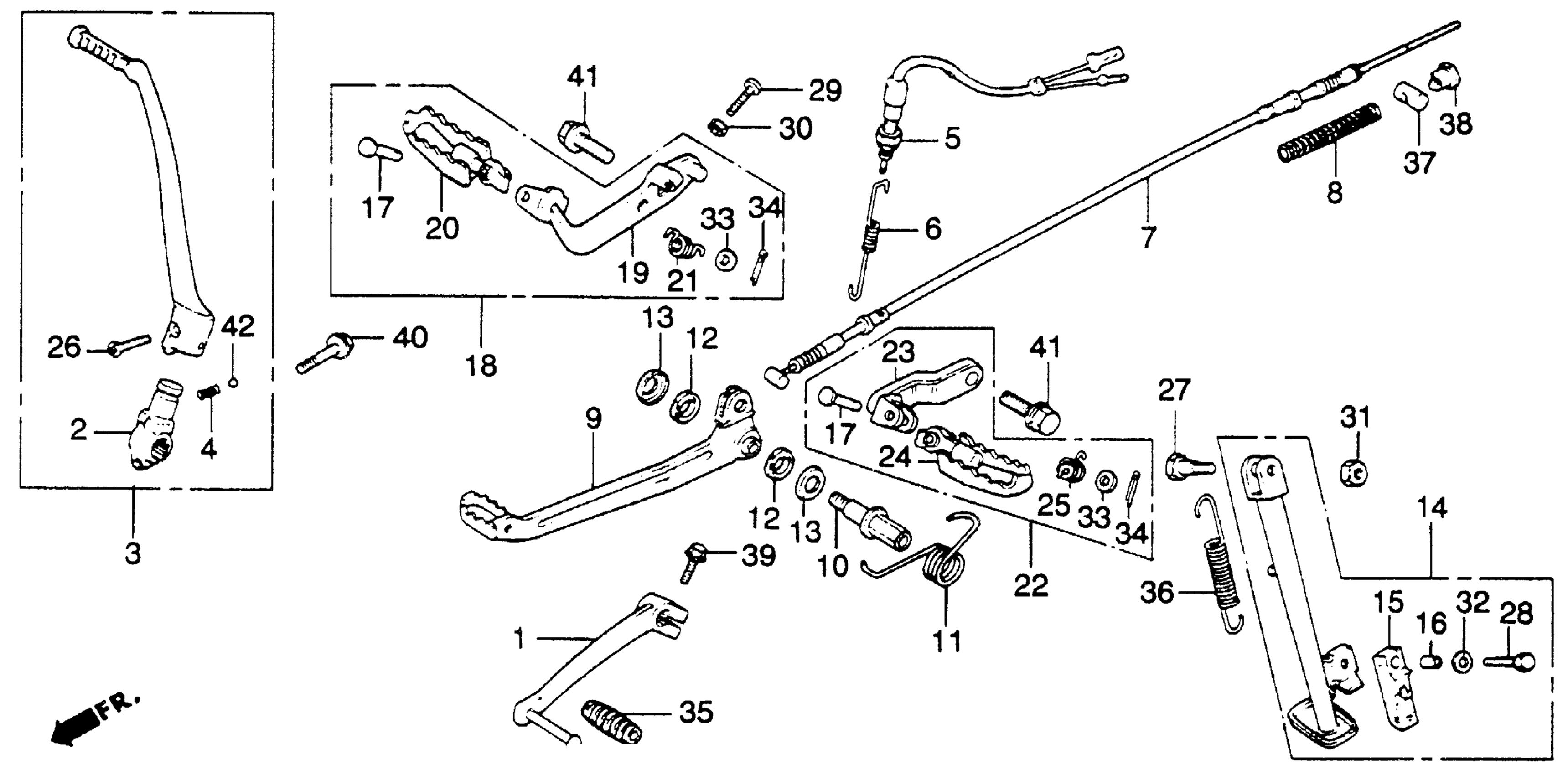 Honda XL250SA (80) MOTORCYCLE, JPN, VIN# MD01-5200001 TO MD01-5207793 FOOTPEGS + GEARSHIFT BRAKE PEDALS + STANDS 78-81 Diagram