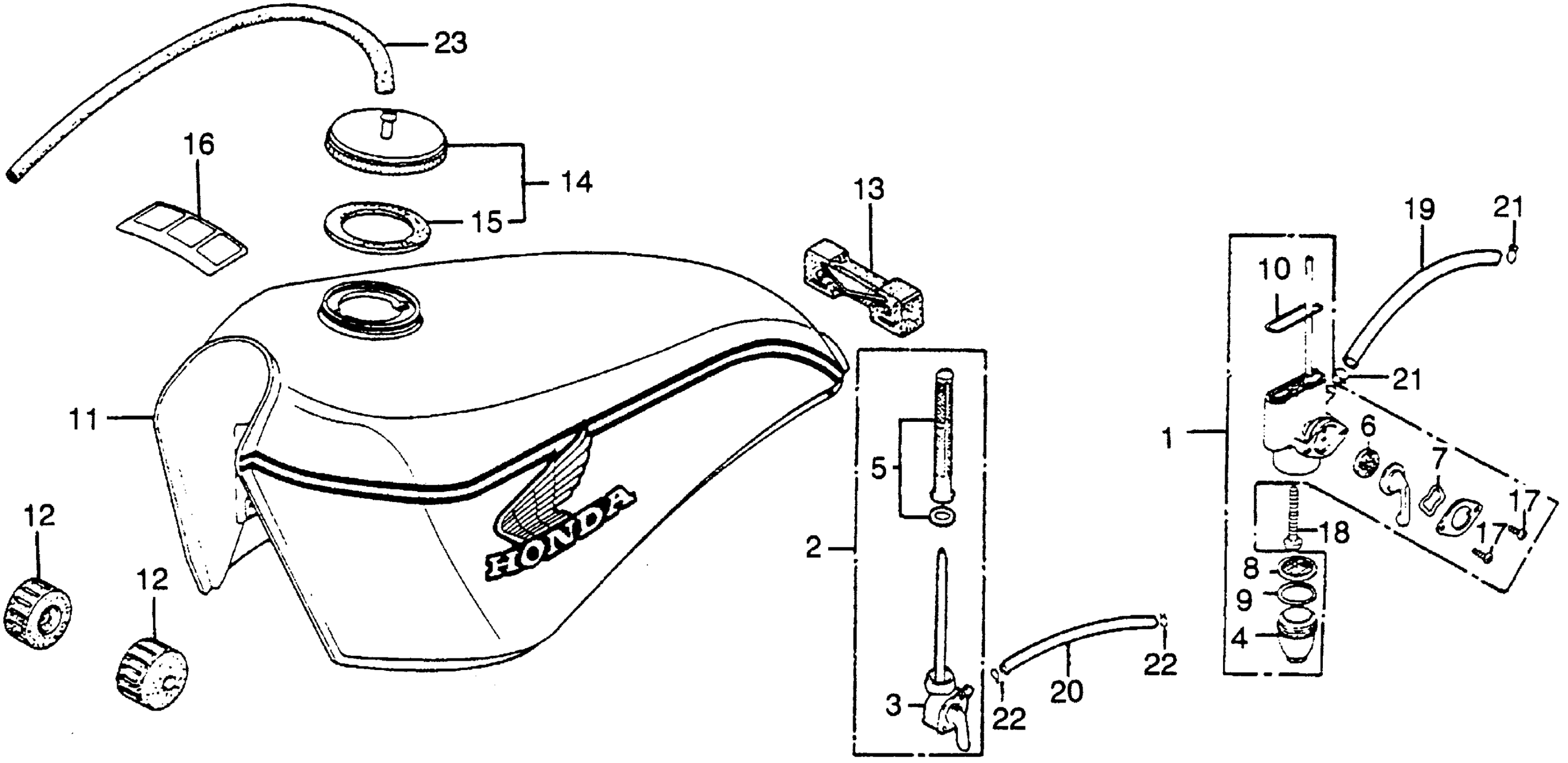Honda XL350A (78) MOTORCYCLE, JPN, VIN# XL350-3200001 TO XL350-3207569 FUEL TANK + FUEL LEVER Diagram