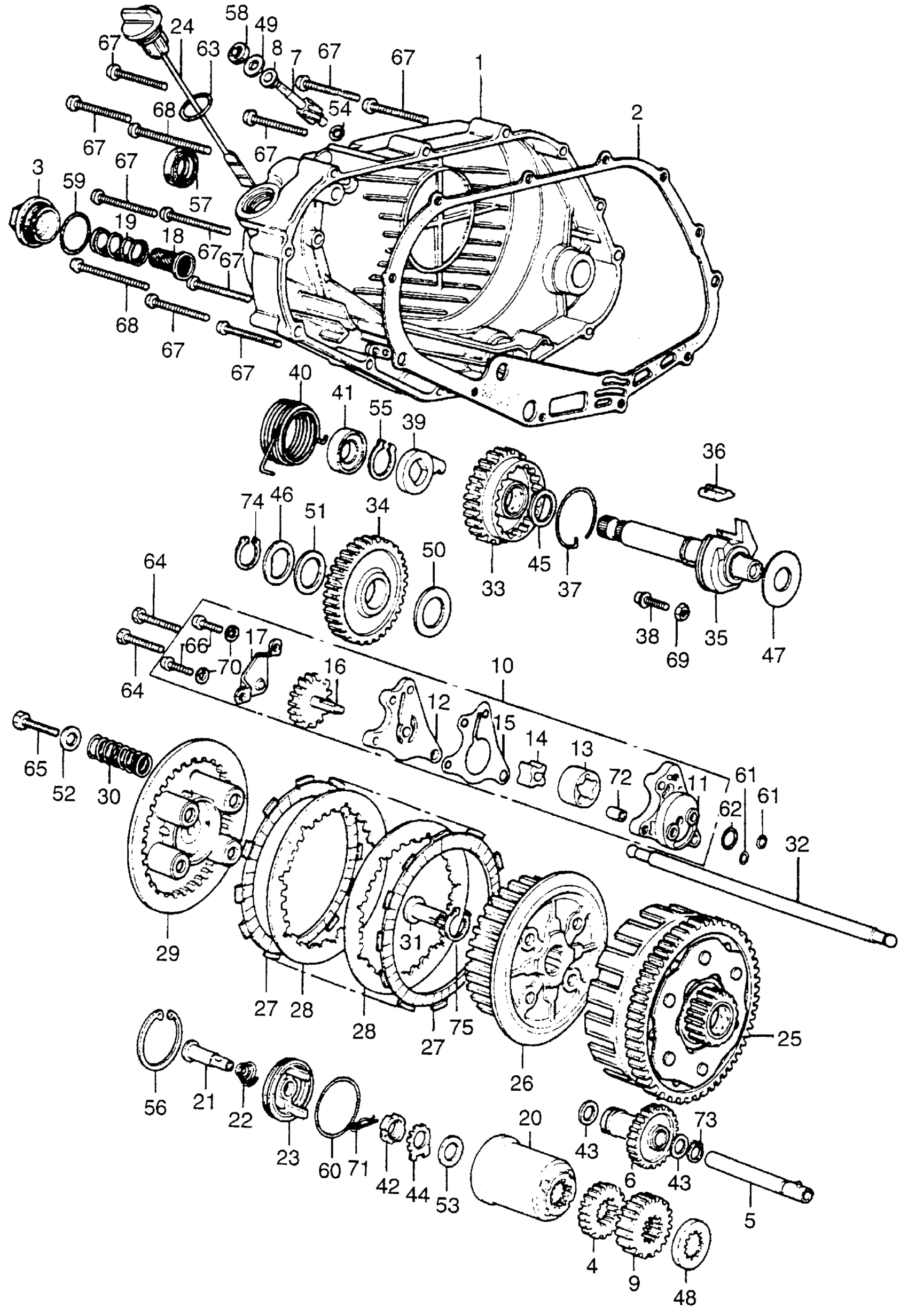 Honda XL350A MOTORCYCLE, JPN, VIN# XL350-1000001 TO XL350-1021659 RIGHT CRANKCASE COVER + CLUTCH Diagram
