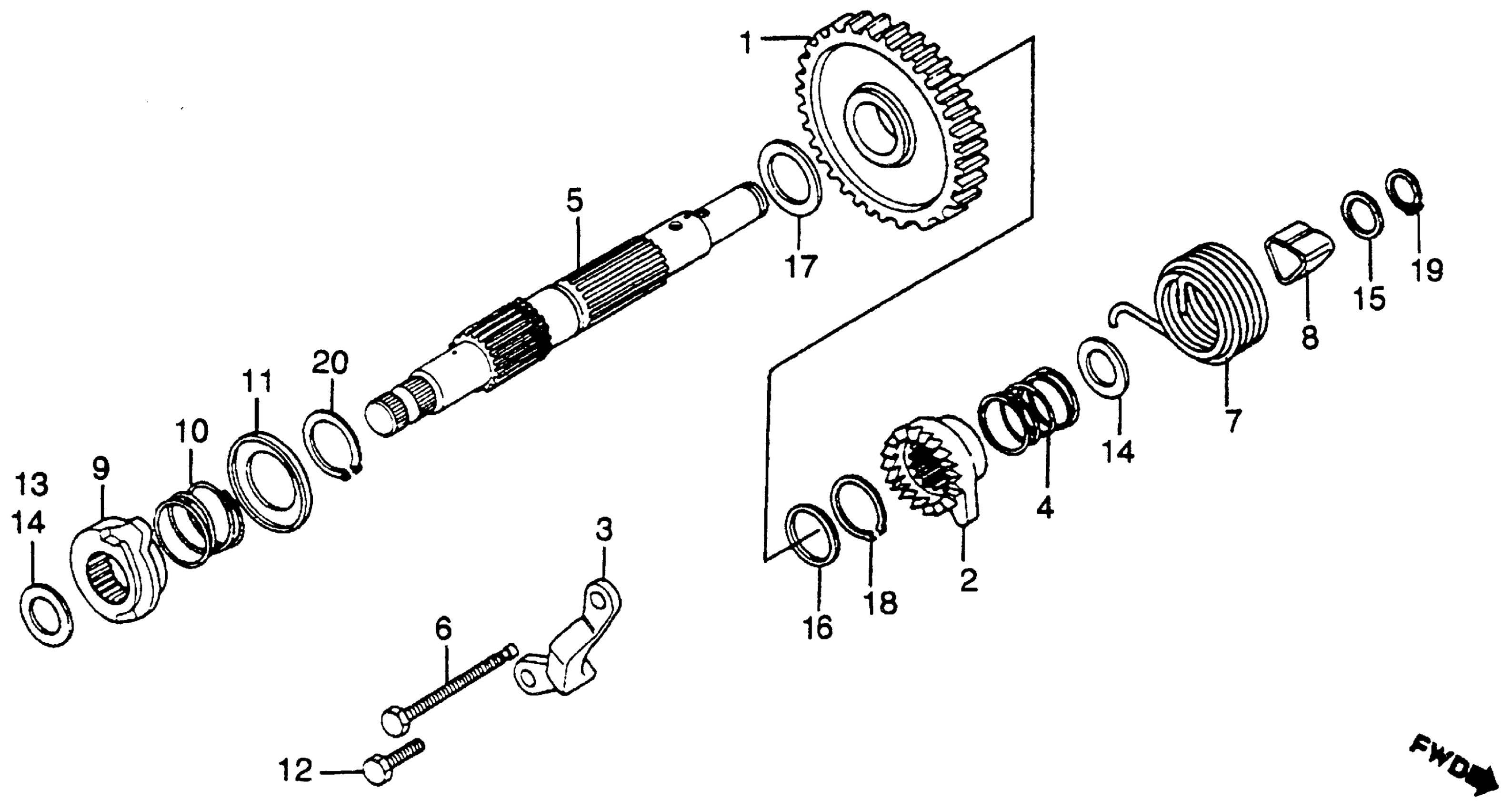 SPINDLE, KICK STARTER This part replaces 28250-429-020.