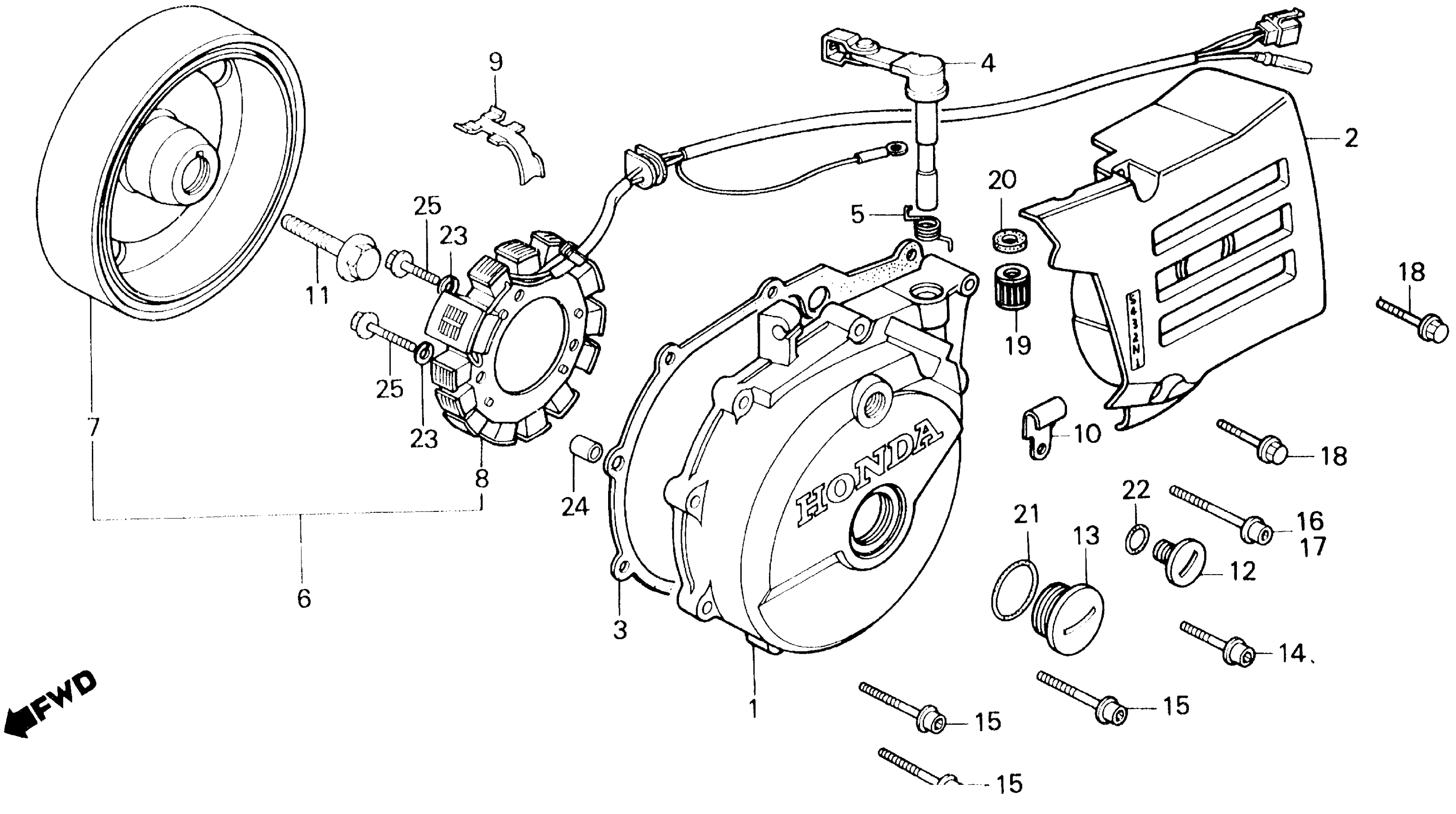Honda XL600RA (84) MOTORCYCLE, JPN, VIN# JH2PD030-EM100006 TO JH2PD030-EM102560 LEFT CRANKCASE COVER + ALTERNATOR Diagram