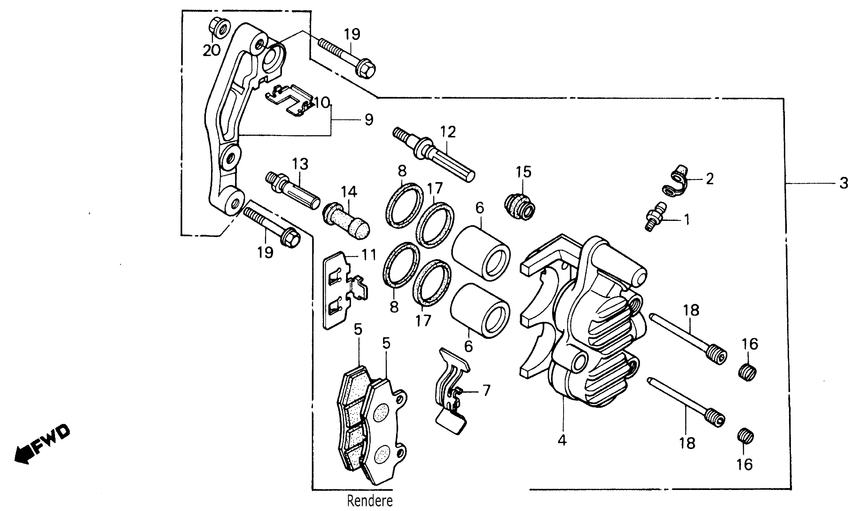 Honda XL600RA (86) MOTORCYCLE, JPN, VIN# JH2PD030-GK300002 TO JH2PD030-GK303182 FRONT BRAKE CALIPER Diagram