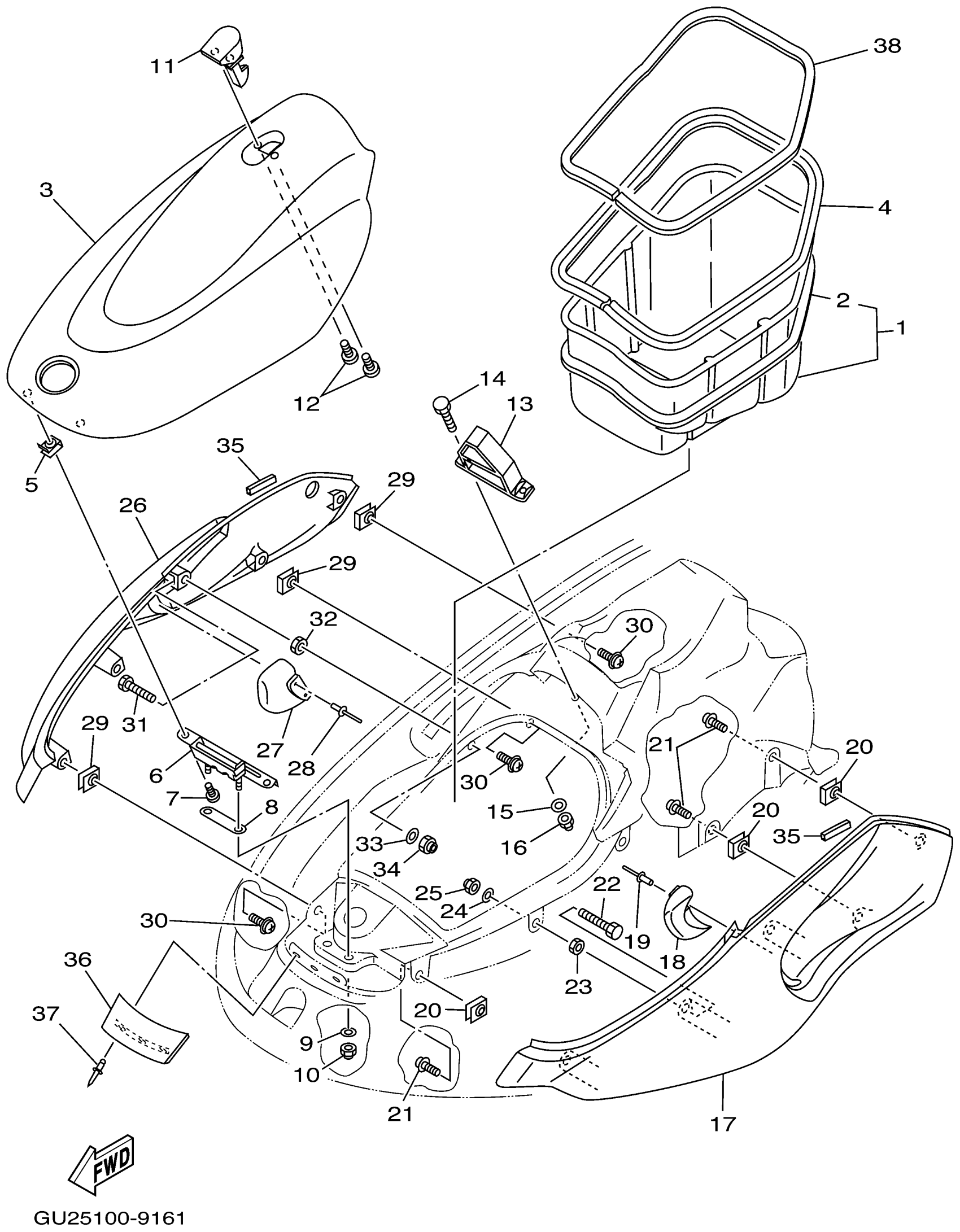 Yamaha XL700X (WAVE RUNNER XL700) F0M1 1999 ENGINE HATCH 2 Diagram
