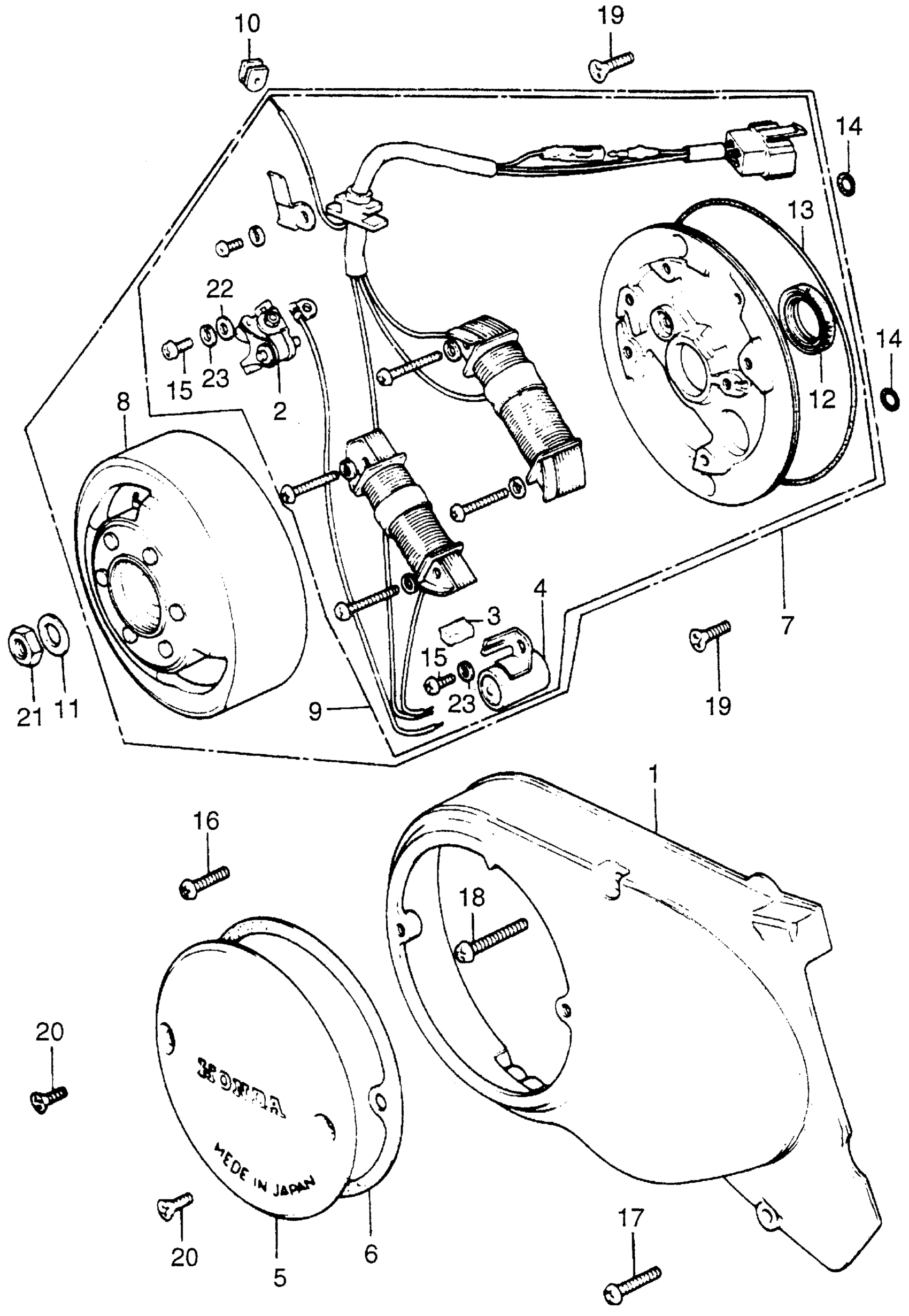 Honda XL70A MOTORCYCLE, JPN, VIN# XL70-1000001 LEFT CRANKCASE COVER + ALTERNATOR Diagram