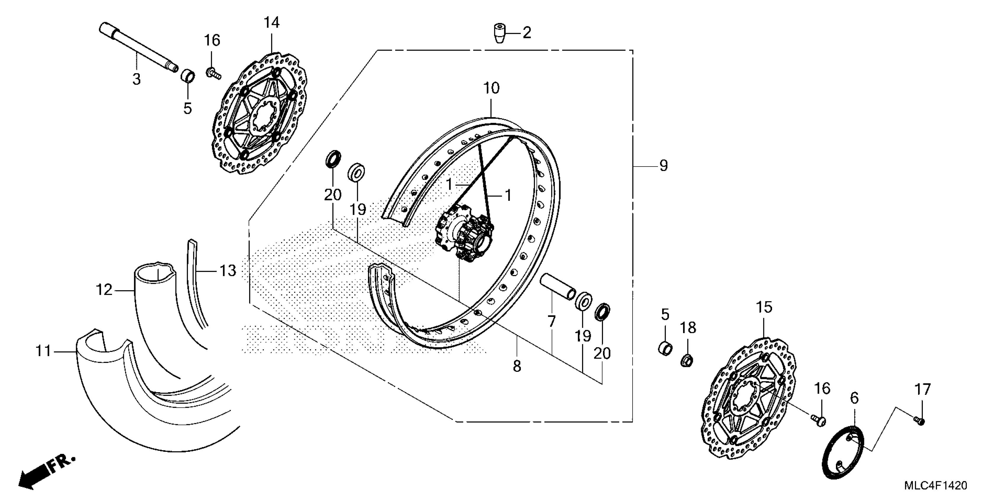 Honda XL7502AC (25) MOTORCYCLE, JPN, VIN# JH2RD171-SK000001 TO JH2RD171-SK099999 FRONT WHEEL Diagram
