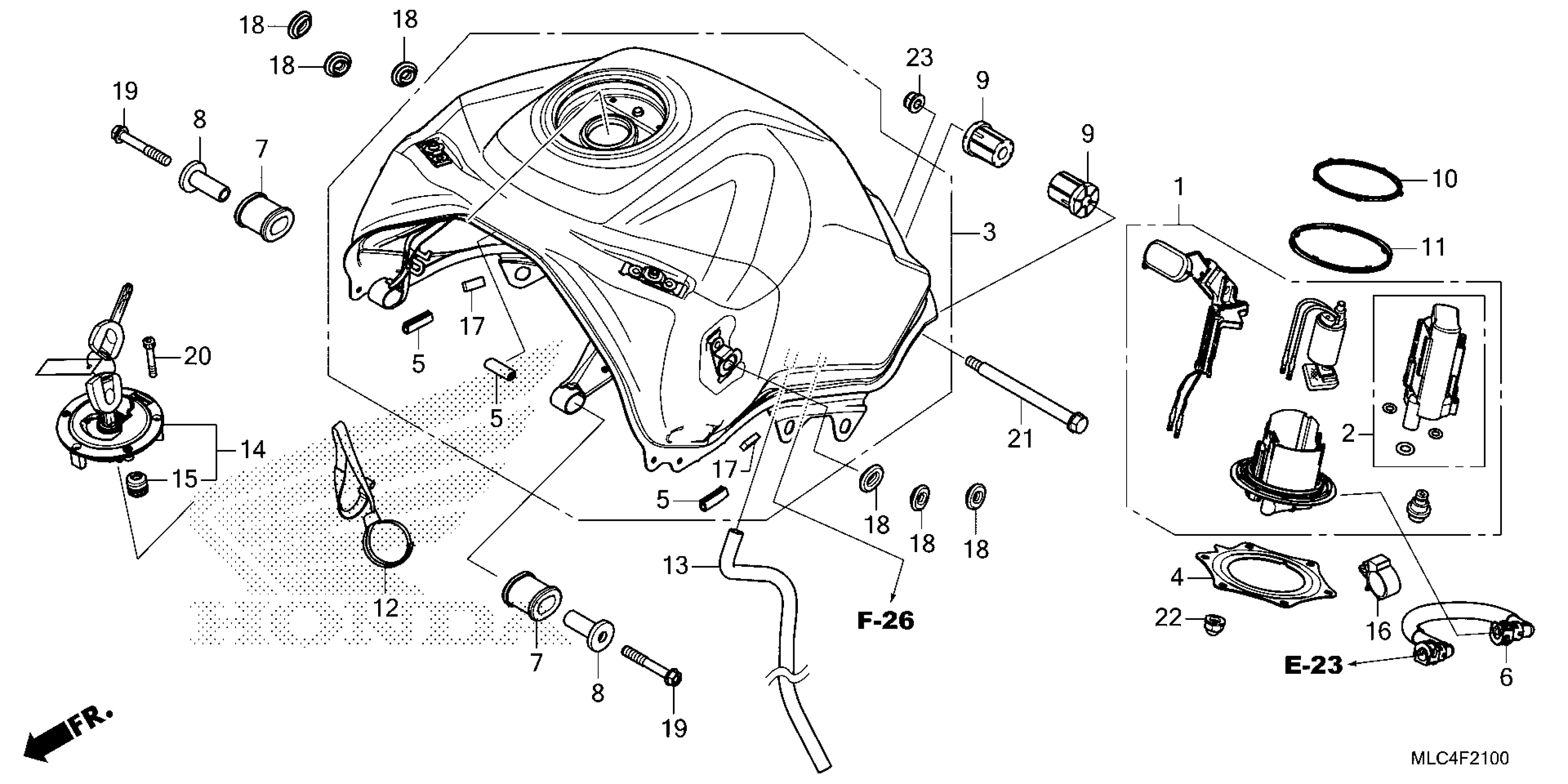 Honda XL7502AC (25) MOTORCYCLE, JPN, VIN# JH2RD171-SK000001 TO JH2RD171-SK099999 FUEL TANK@FUEL PUMP Diagram
