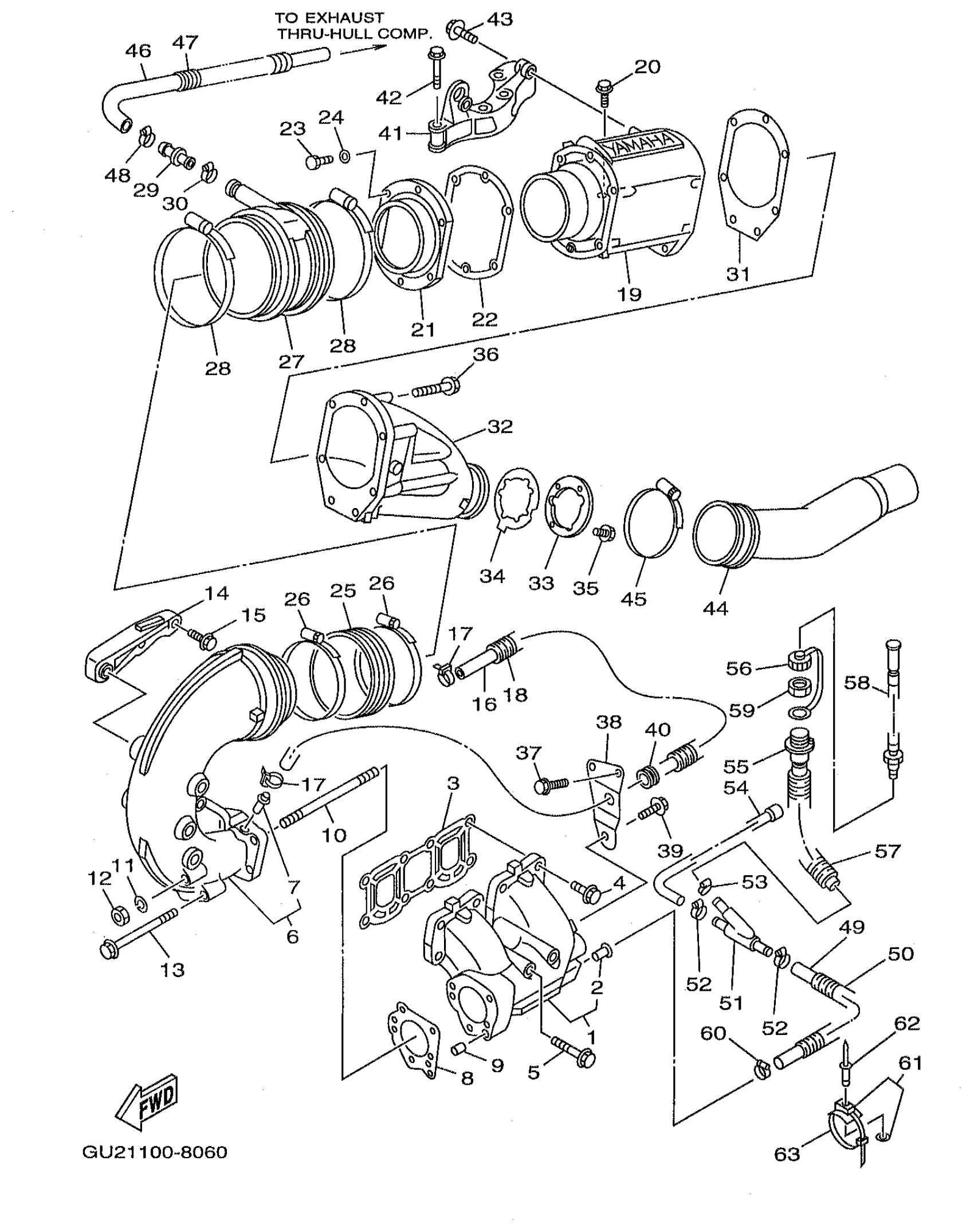 Yamaha XL760W (WAVE RUNNER XL760) 1998 EXHAUST 1 Diagram