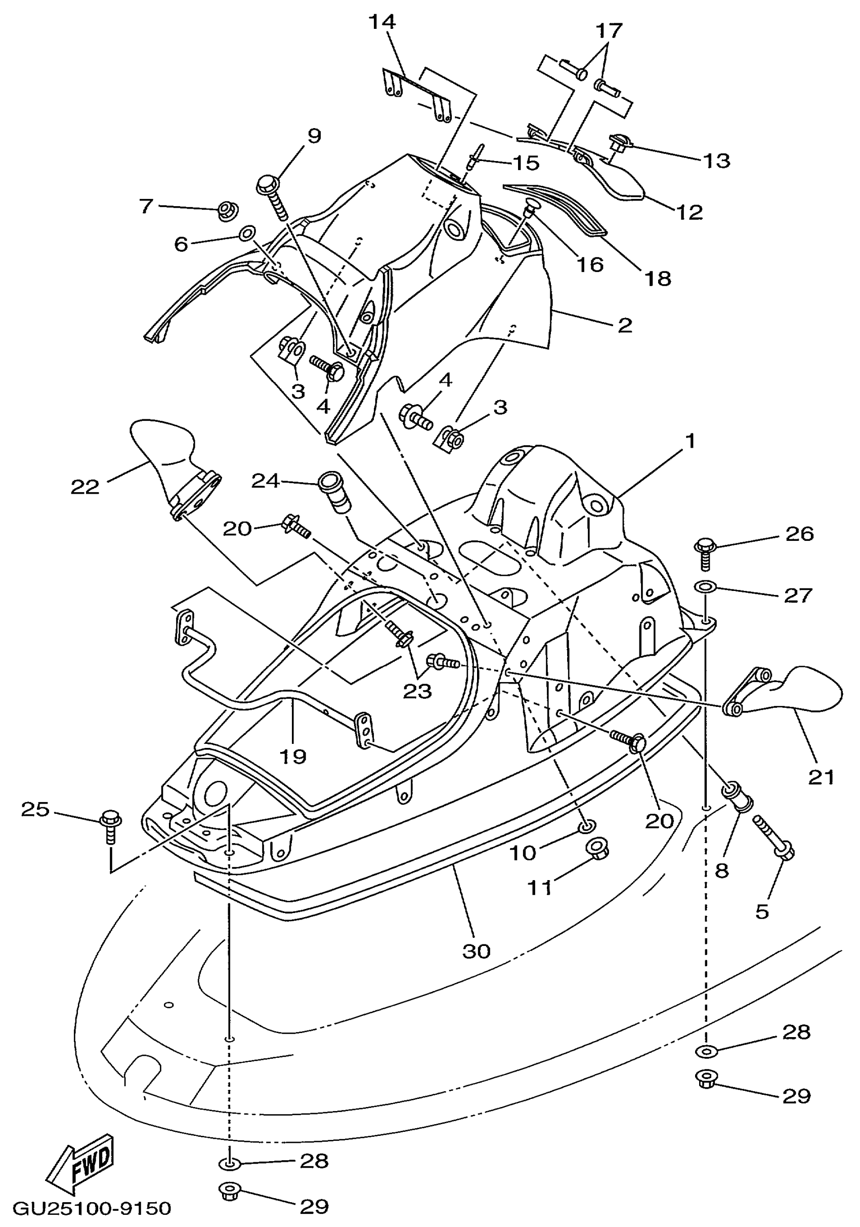 Yamaha XL760X (WAVE RUNNER XL760) GU25 1999 ENGINE HATCH 1 Diagram