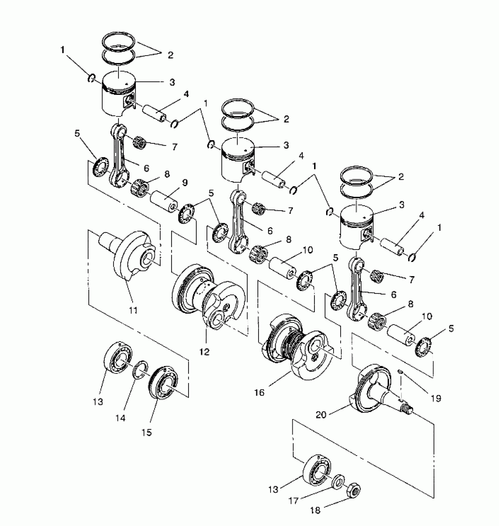 CRANKSHAFT ASM. Substituted by 3084596 (Incl. 5, 6, 8-18)
