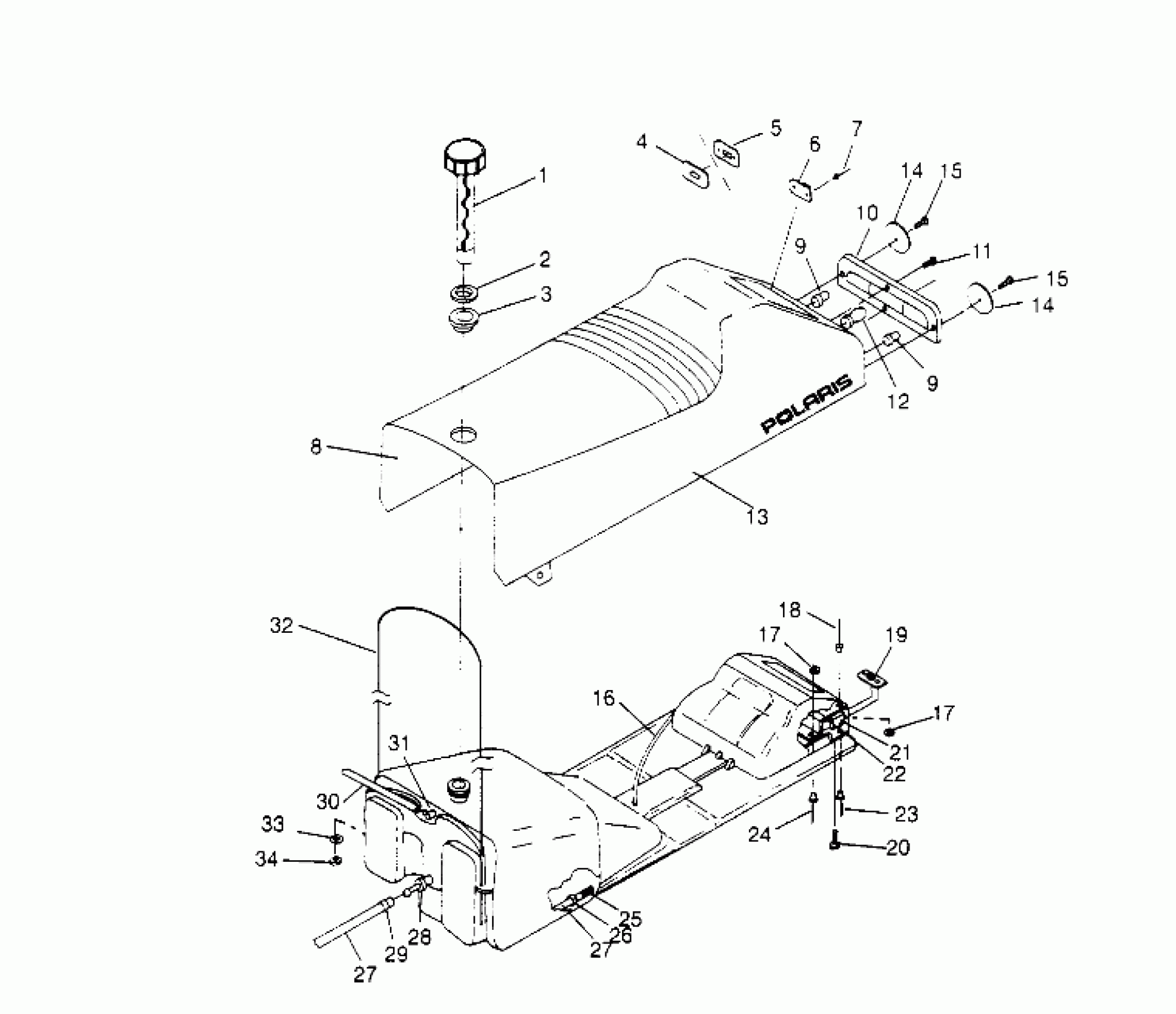 Polaris XLT SP - 0966676 SEAT and GAS TANK XLT SP 0966676 and EUROPEAN XLT SP E966676 (4931703170A007) Diagram