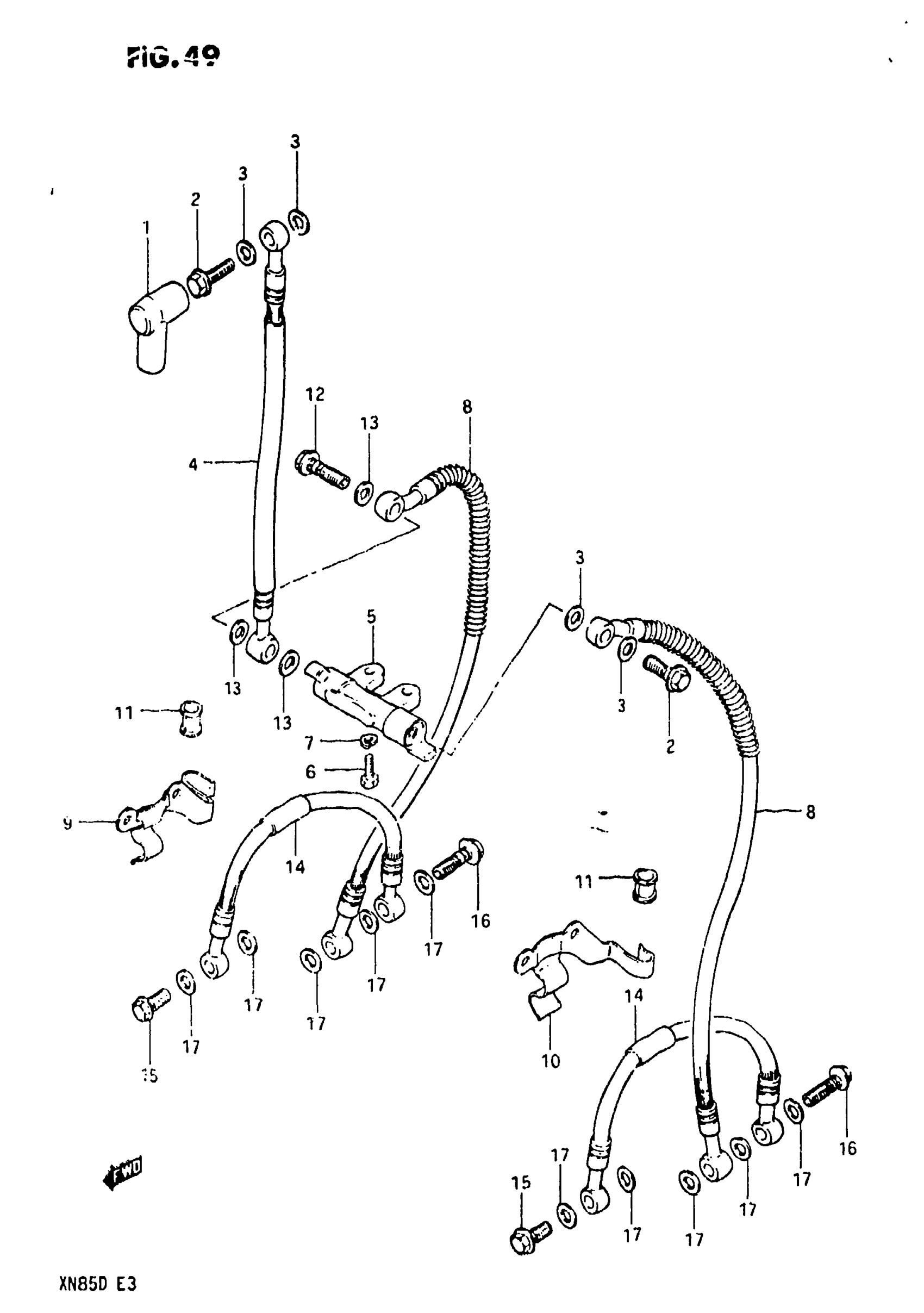 Suzuki XN85-D (1983) FRONT BRAKE HOSE Diagram