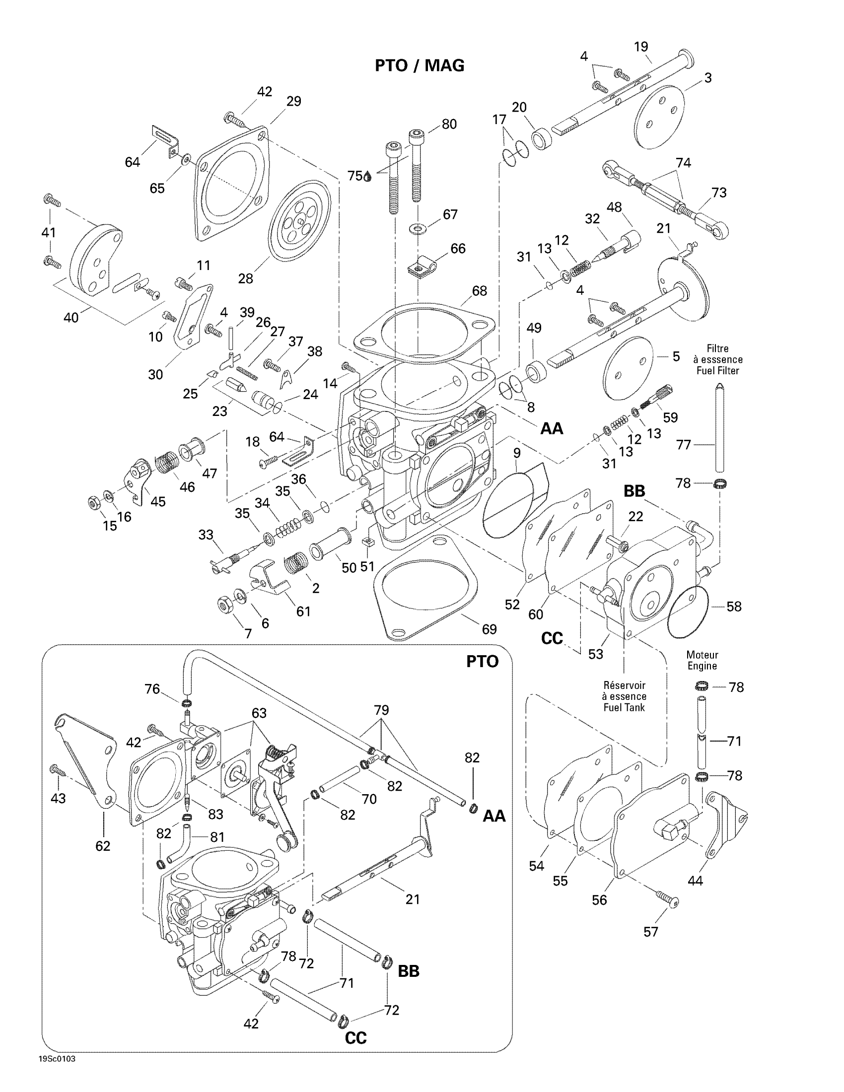 Carburetor BN46i-42-12 (P.T.O Side) | Includes 1 - 66.