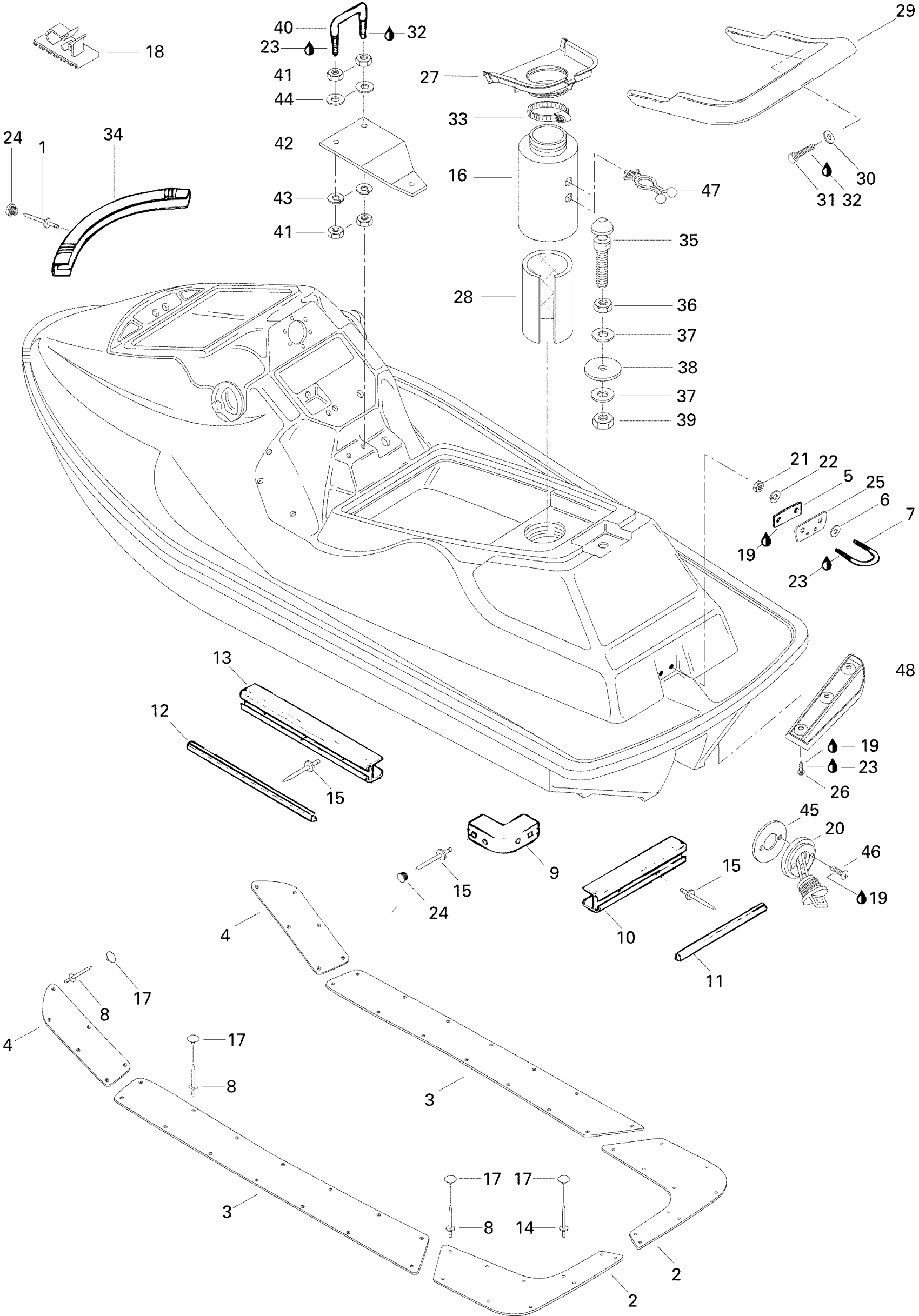 Sea-doo XP, 5858, 1996 09- Body, Rear View Diagram