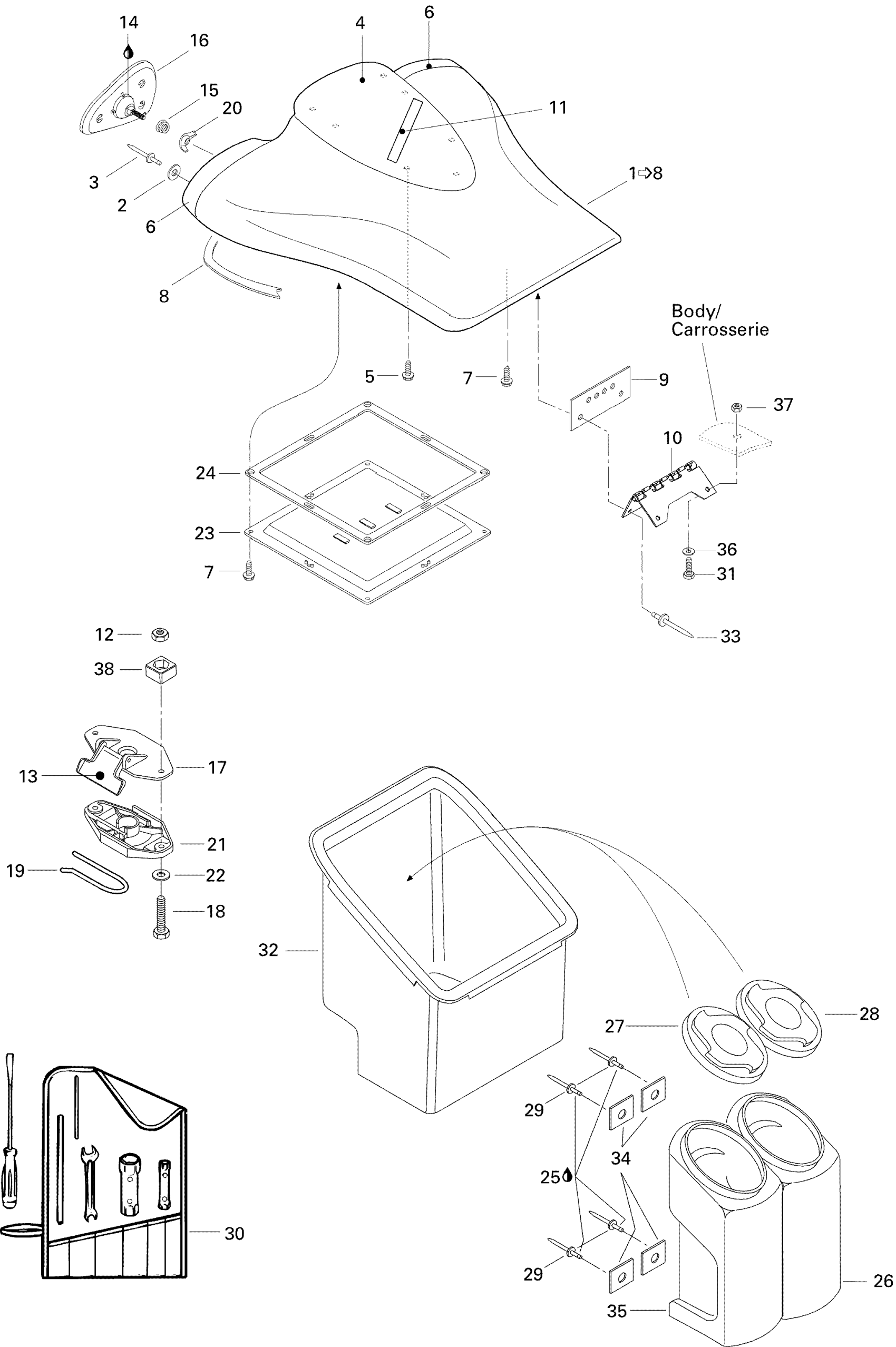 Sea-doo XP, 5858, 1996 09- Front Storage Compartment Diagram