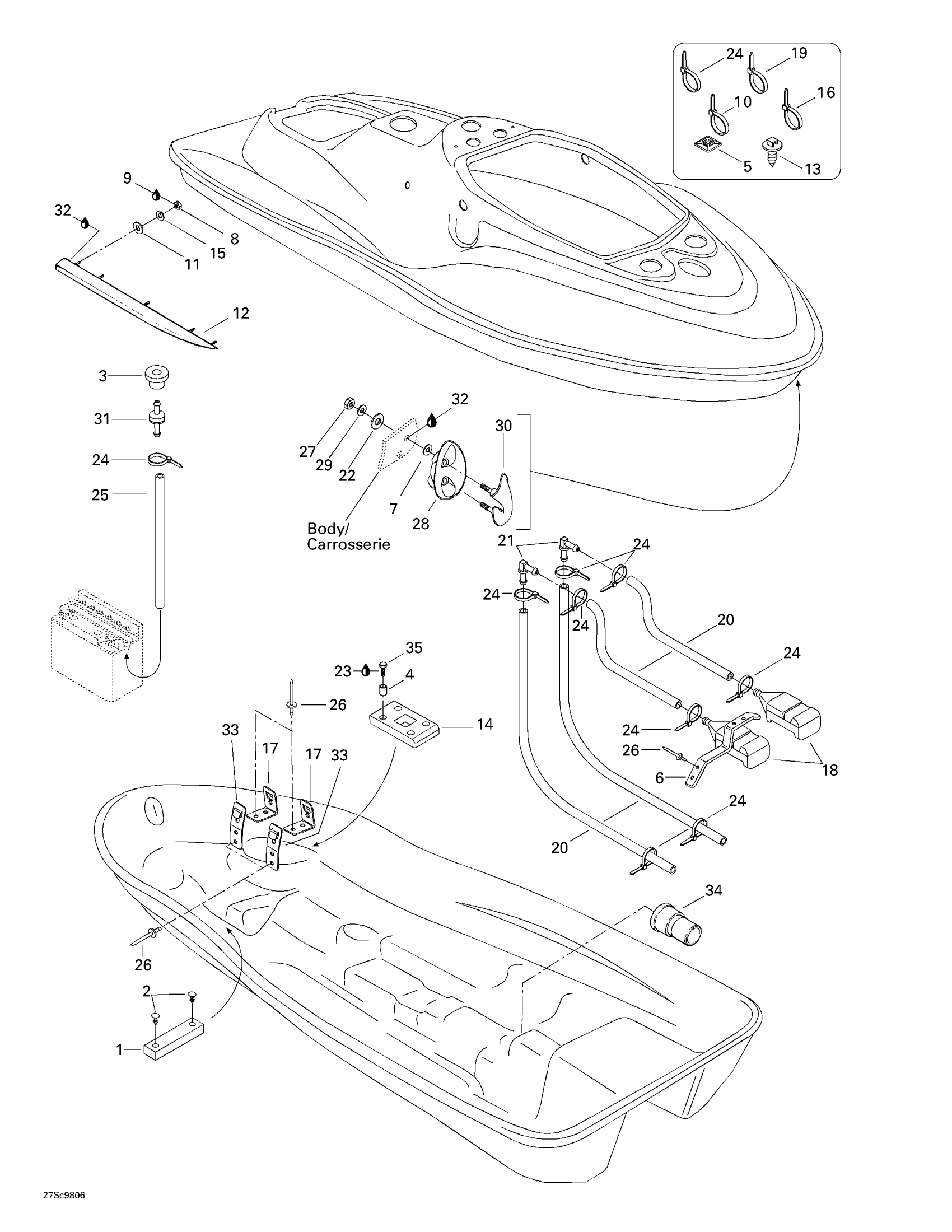 Sea-doo XP Limited, 5665/5667, 1998 09- Body Diagram