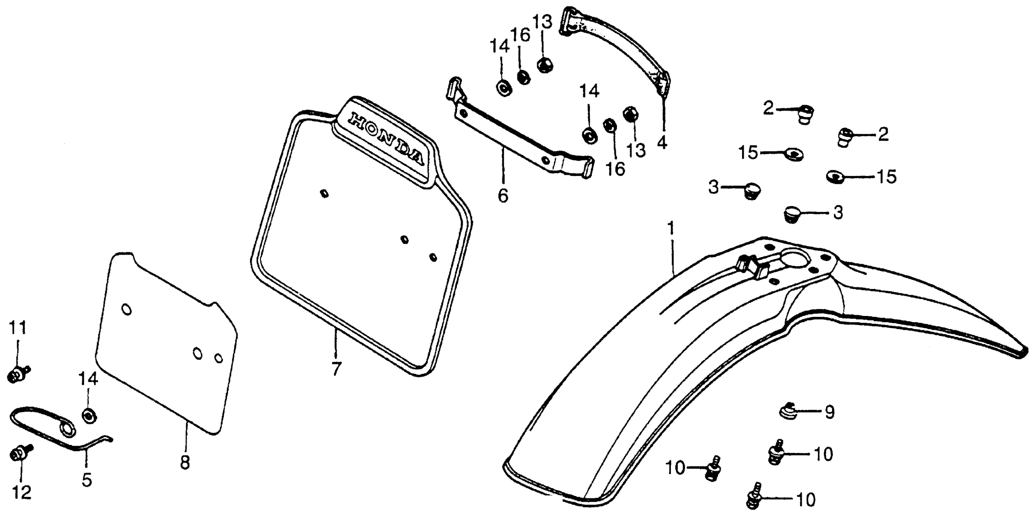 Honda XR100A (82) MOTORCYCLE, JPN, VIN# JH2HE030-CK100004 TO JH2HE030-CK109518 FRONT FENDER + FRONT NUMBERPLATE 82 Diagram