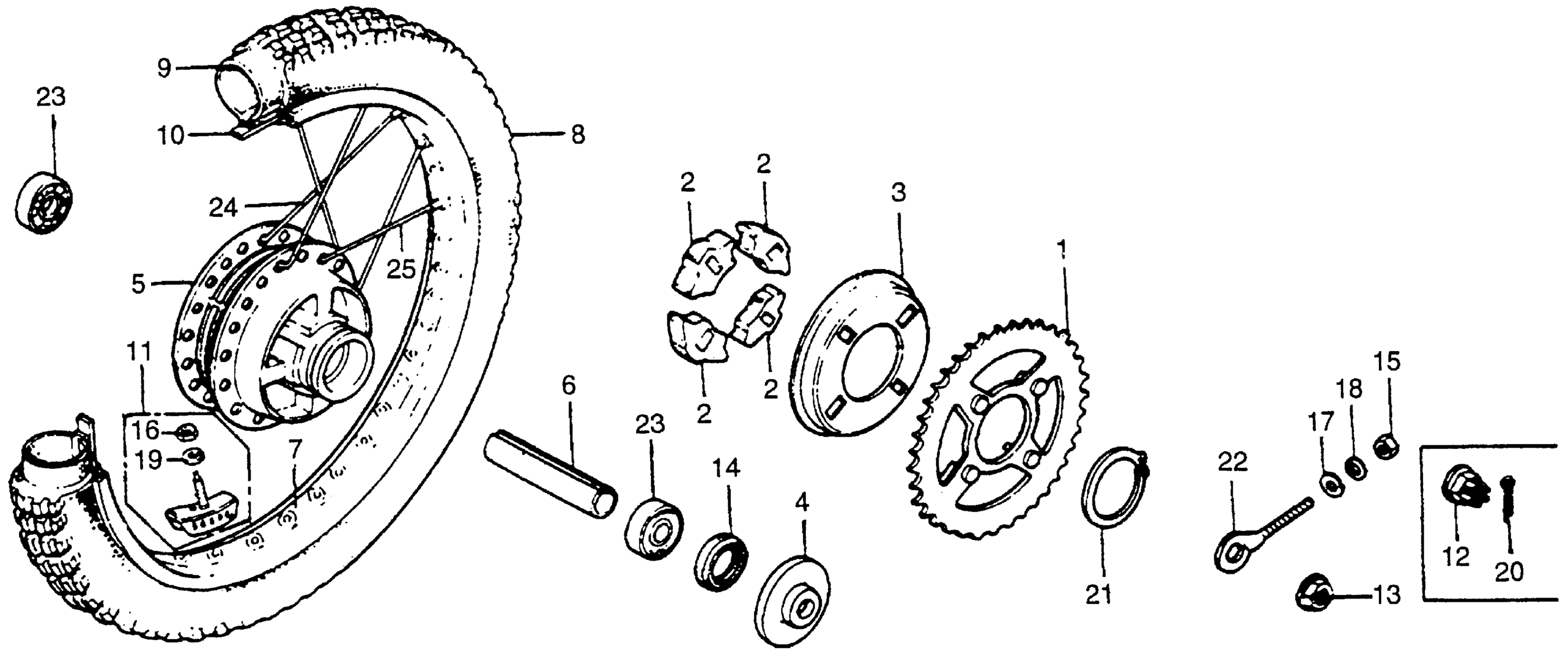 Honda XR100A (82) MOTORCYCLE, JPN, VIN# JH2HE030-CK100004 TO JH2HE030-CK109518 REAR WHEEL Diagram