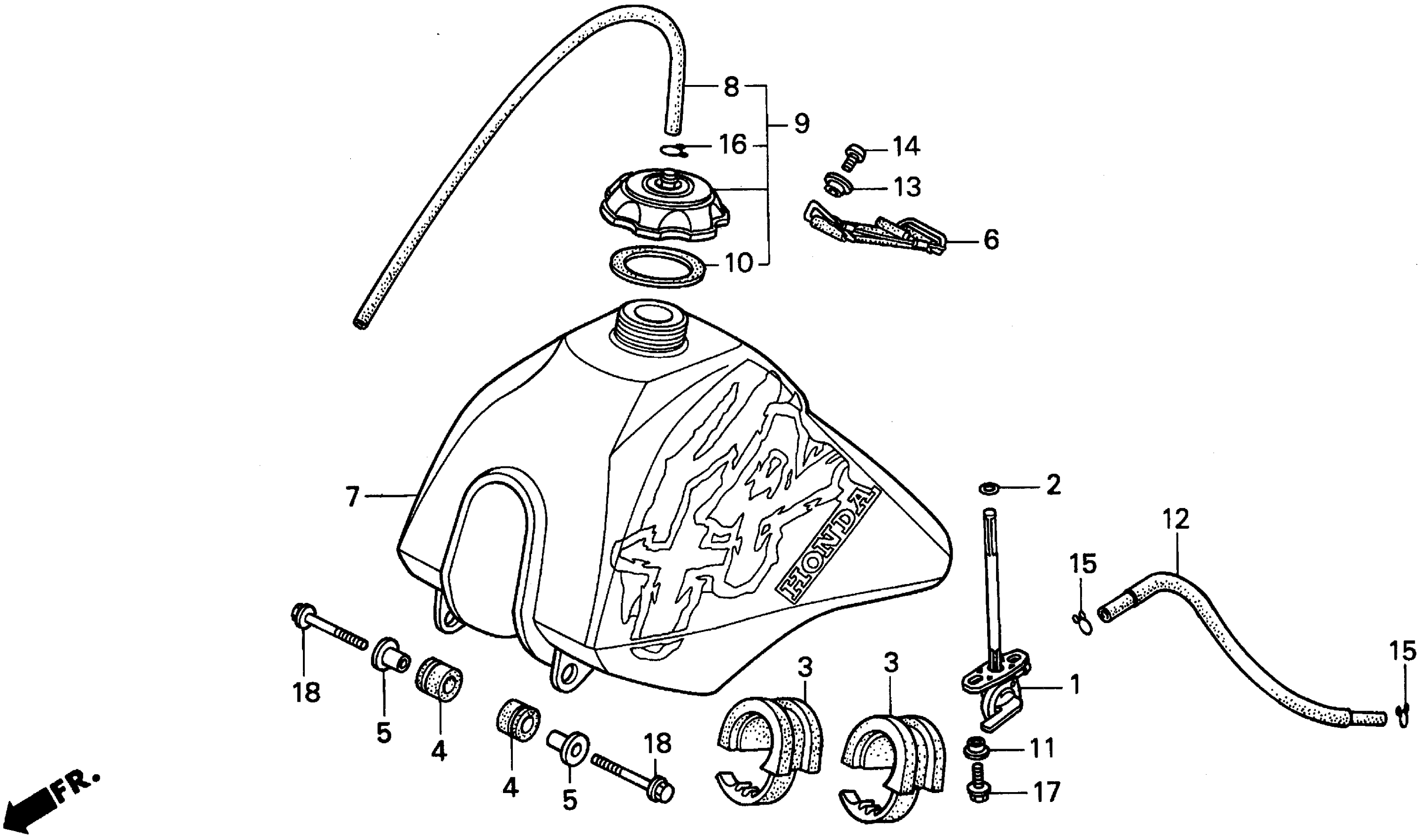 Honda XR100RA (94) MOTORCYCLE, JPN, VIN# JH2HE030-RK300001 TO JH2HE030-RK307531 FUEL TANK Diagram