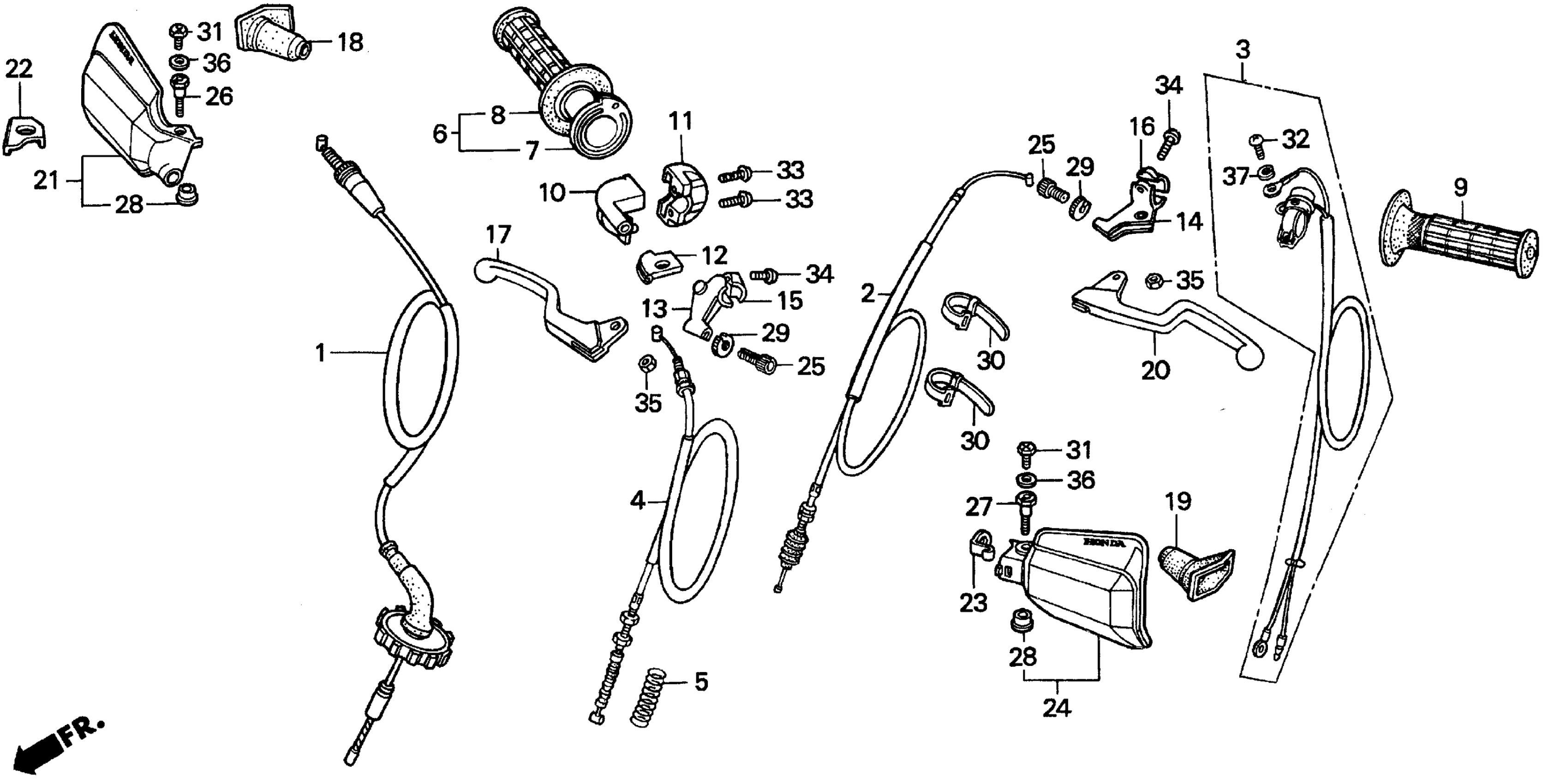 Honda XR100RA (94) MOTORCYCLE, JPN, VIN# JH2HE030-RK300001 TO JH2HE030-RK307531 HANDLE SWITCH@CABLES Diagram